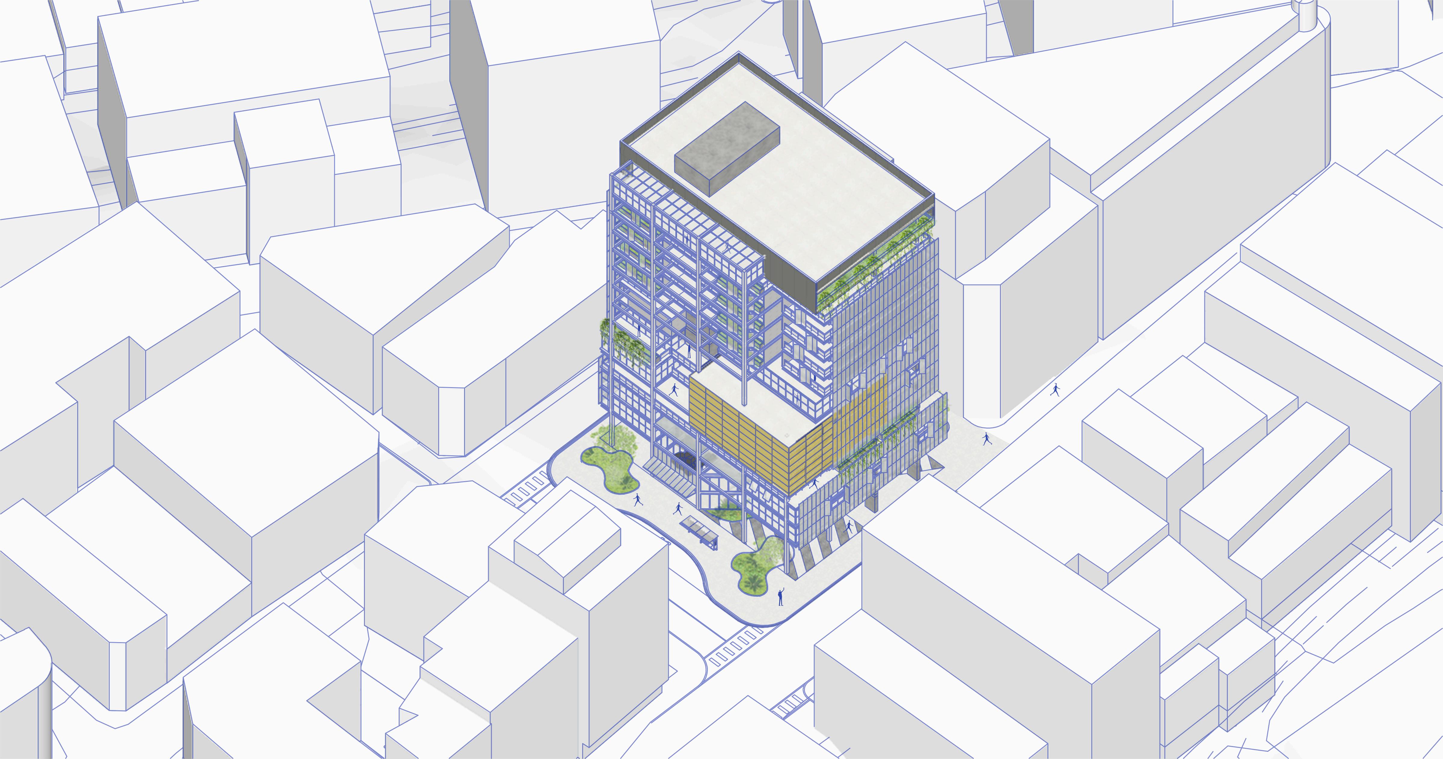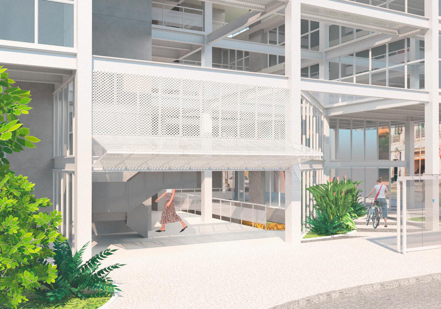 É assim que o projeto arquitetônico se desenvolve por meio da busca de articular o reaproveitamento e ampliação do objeto, explorando o potencial da proposta de implementação de um edifício híbrido que se insere num contexto urbano de transformação.