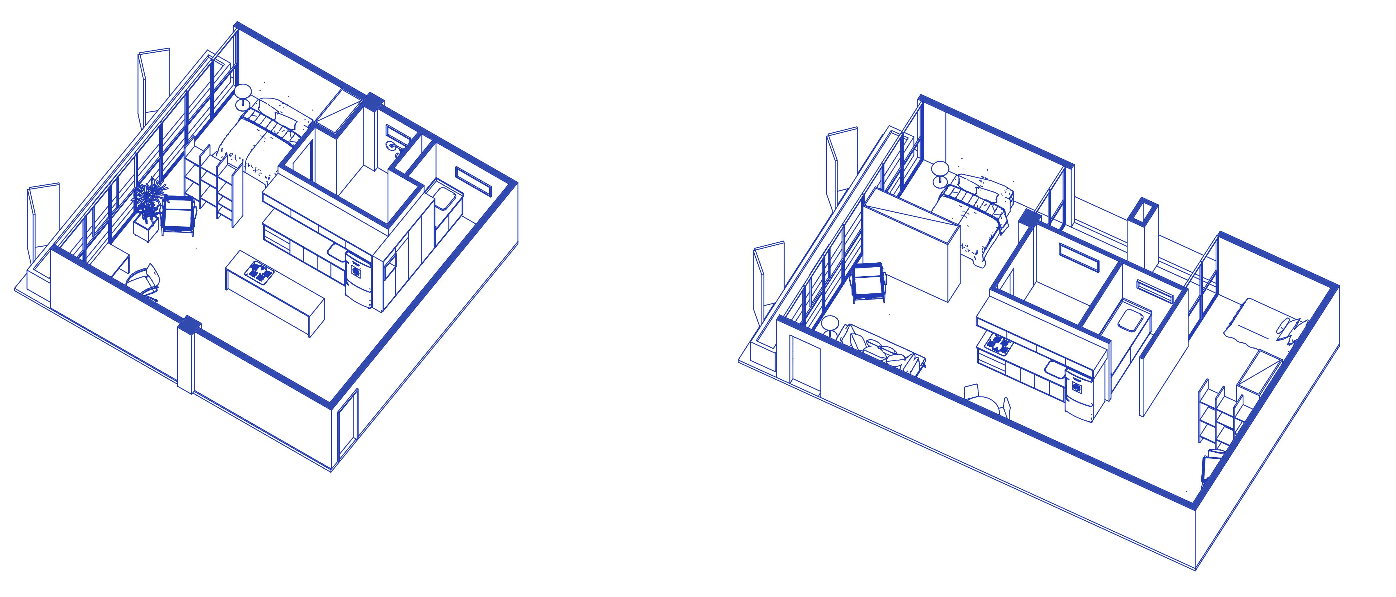 Na ilustração isométrica ao lado é possível visualizar os cortes e as adições de laje conforme novas necessidades de disposição de cada pavimento.