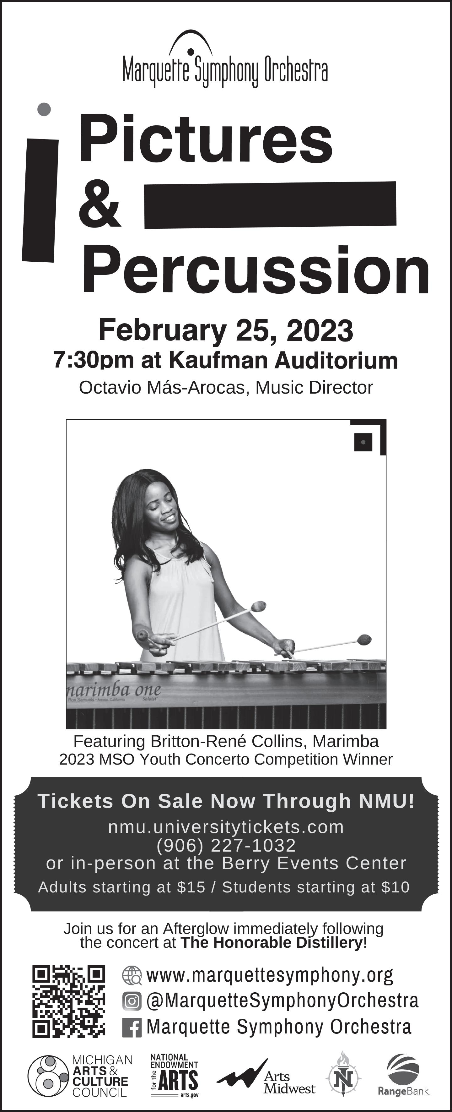 • Marquette Symphony Orchestra Concert. Prices vary. 7:30 p.m. Kaufman Auditorium, 611 N. Front St. nmu.universitytickets.com