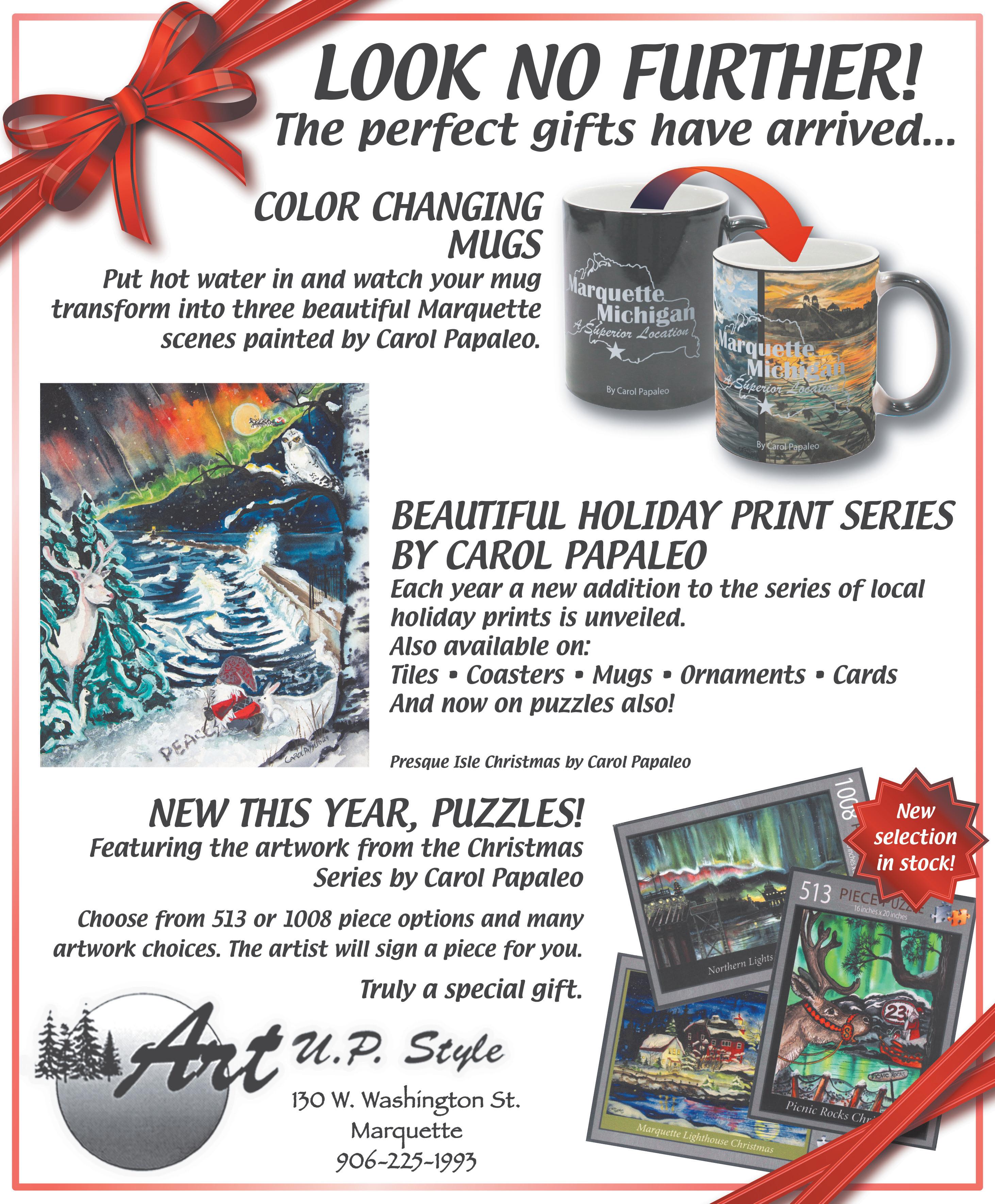 This month’s cover artist is Carol Papaleo, a full-time artist who works in watercolors, acrylics and mixed media. She is the owner of the Art U.P. Style Gallery in downtown Marquette. See more of her artwork at her shop and on Facebook and Etsy.