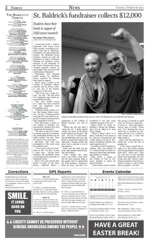 Corrections The Marquette Tribune welcomes questions, comments, suggestions and notification of errors that appear in the newspaper. Contact us at (414) 288-5610 or editor@marquettetribune.org.