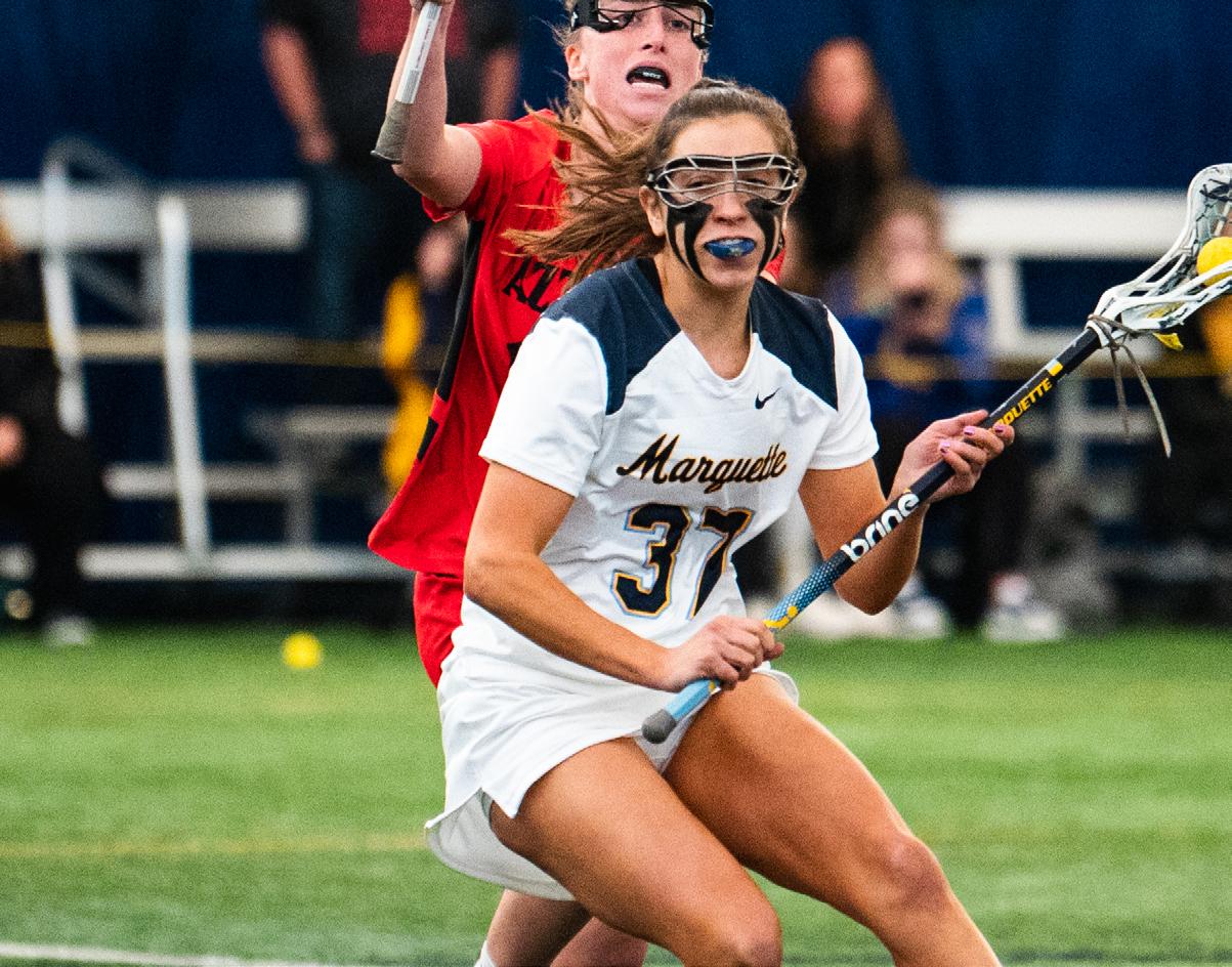 Evans saw time in Marquette’s season and home opener on Feb. 4 against Lindenwood. He went 2-for-2 on face-offs and picked up one ground ball. Taped on