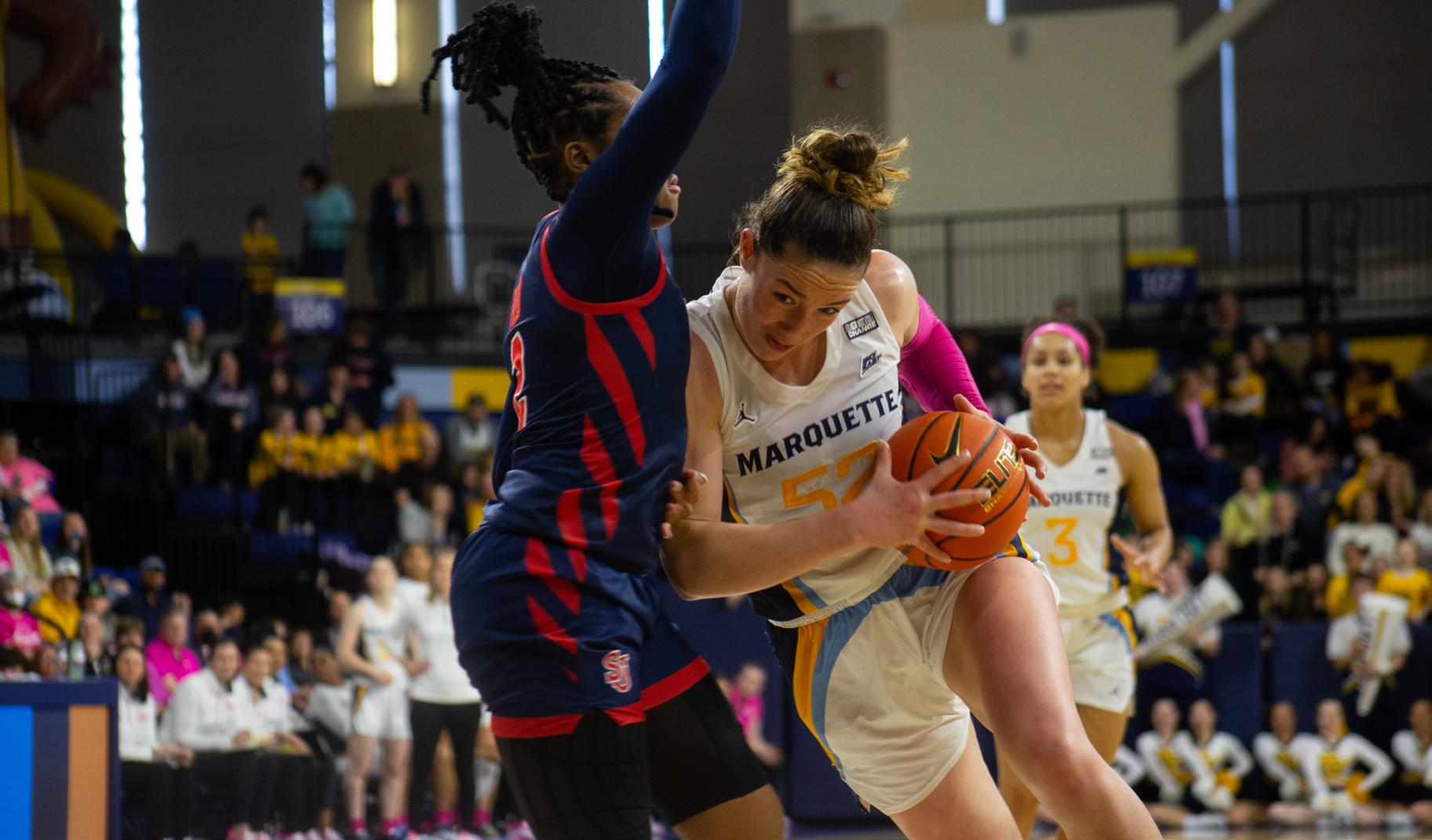 Marquette women’s basketball picked up a big win in the Big East conference standings Saturday afternoon as it defeated St. John’s 61-38 at the Al McGuire Center. With three games remaining in the regular season, the Golden Eagles sit fourth in the Big East.