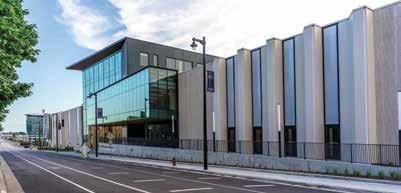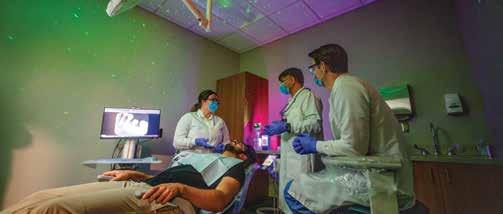 equipped with flexible technology to accommodate in-person and hybrid learning. A new simulation center is equipped with an operating room, several hospital inpatient rooms, clinic space and a studio apartment meant to simulate home health care.