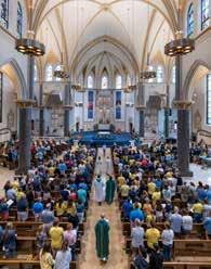 In 2024, the university doubled down on the importance of the traditional Mass of the Holy Spirit by canceling classes and making that time available for students, faculty and staff to pray at the Church of the Gesu for a successful and happy year. In just the first year, over 350 people attended Mass, a notable increase in attendance over previous years.
