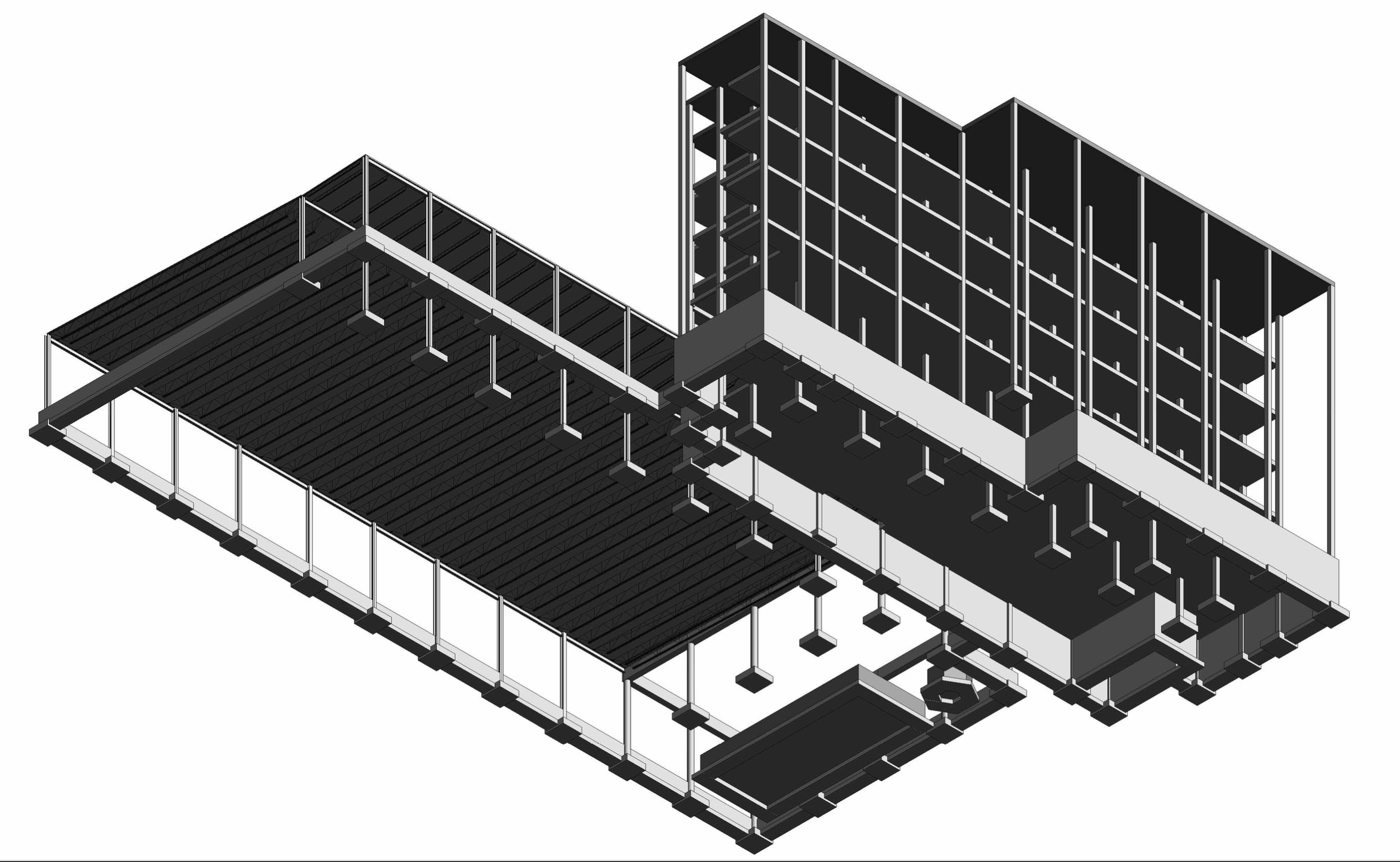 Here shows a section cut of the building from the south side of the stucture. It is nothing spectacular, but this project shows waht I was capable ou with the time time that I was giving to complete this project.