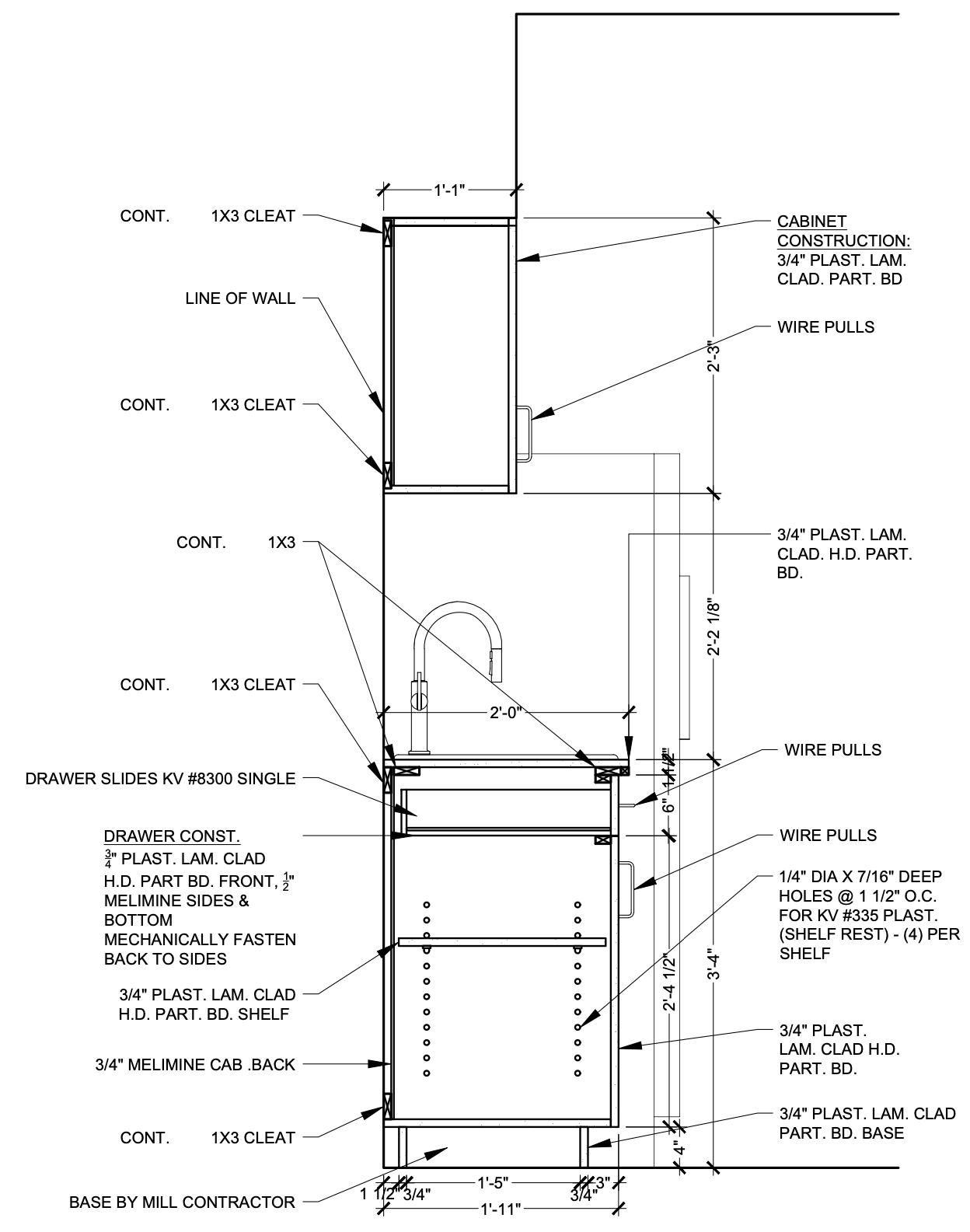 The second detil is a section cut of the kitcthen area that is in the breakroom of the office.
