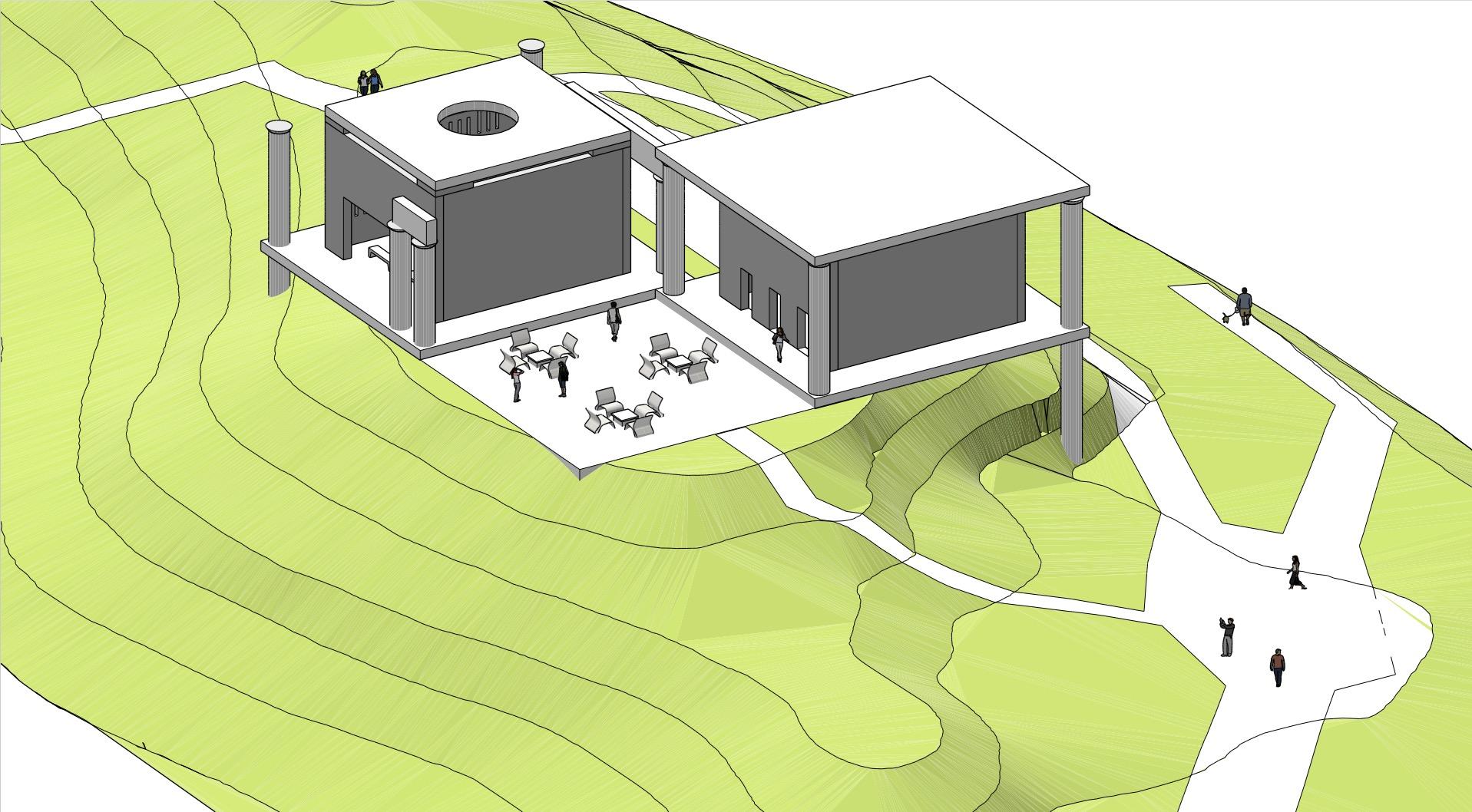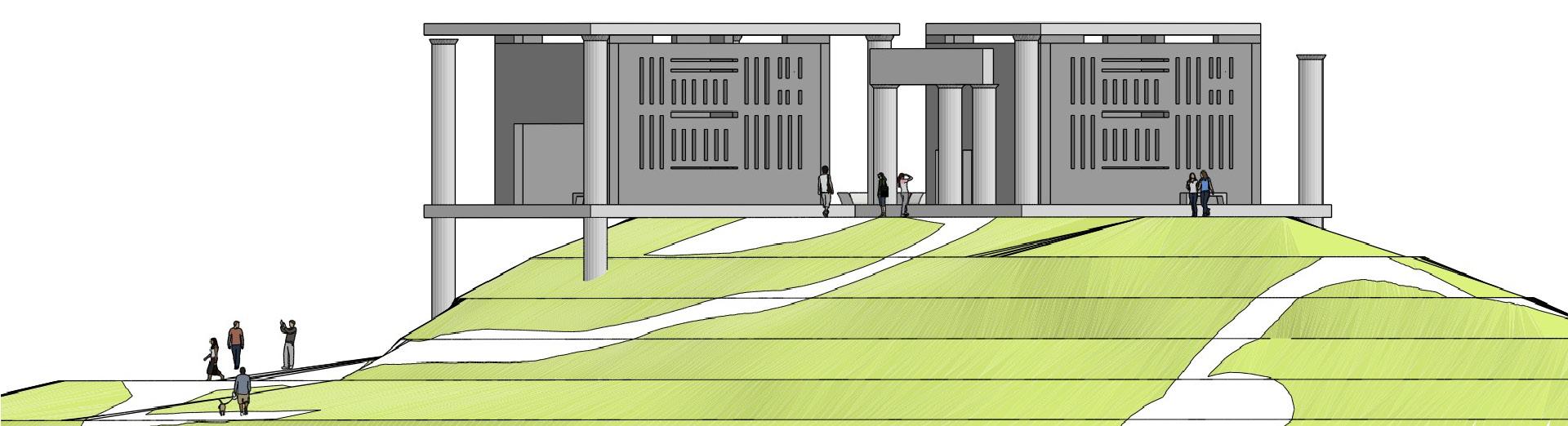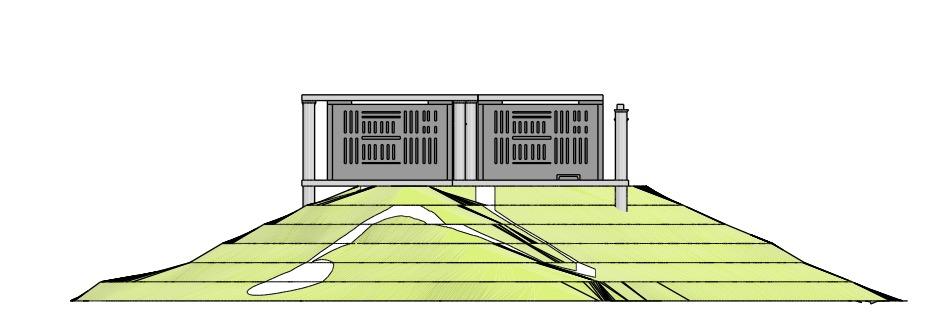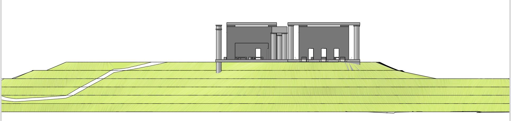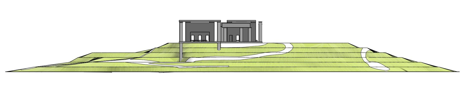 Hear are a few elevations of the pavilion on the site as well as an iso. the elevation show the silts that cover specific faces that to capture light for the south and project of the wall of the pavillions interior.