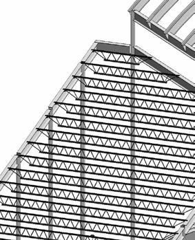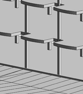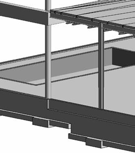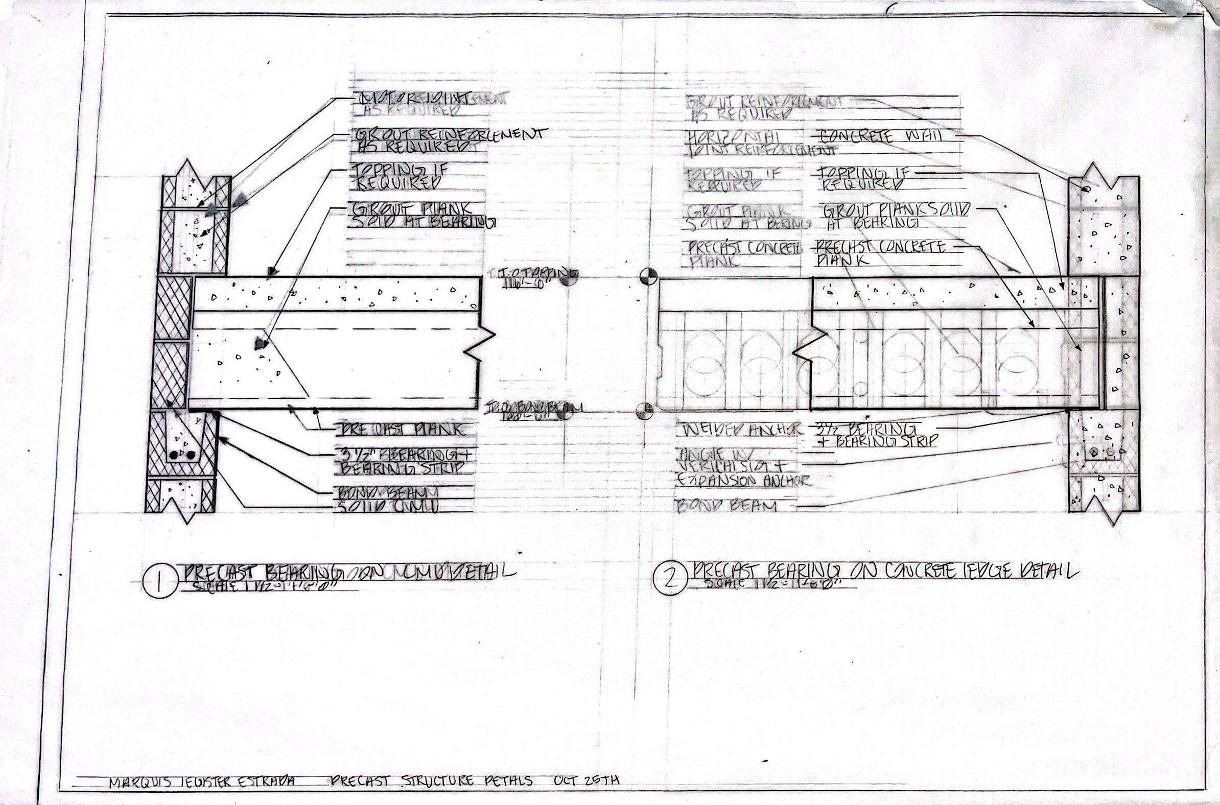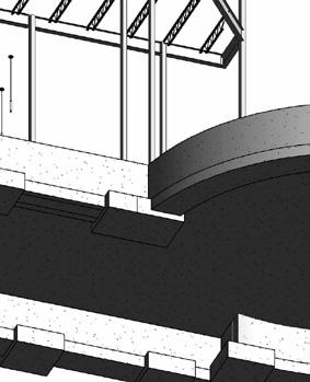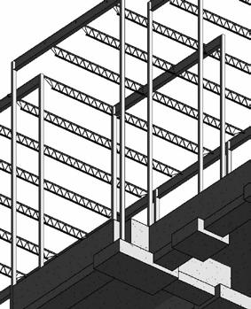These drawings are from the hotel’s north conference room. I used detailing components to create a technical drawing of the exterior wall on a stepped foundation. They highlight the interaction between the open-web joist and the wall at a crucial point in the building’s structural framing.