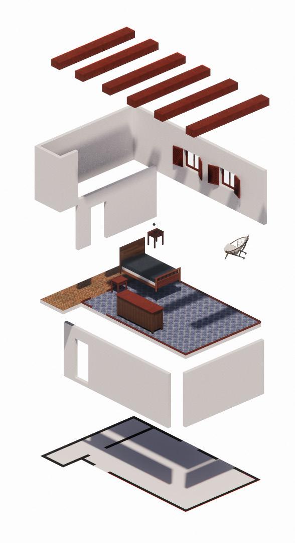 The finished floor plan was a mile stone with for the hotel design process. The assignment was given to practice creating and assigning parts and specific material. Colors and texture were determined by the material I chose.