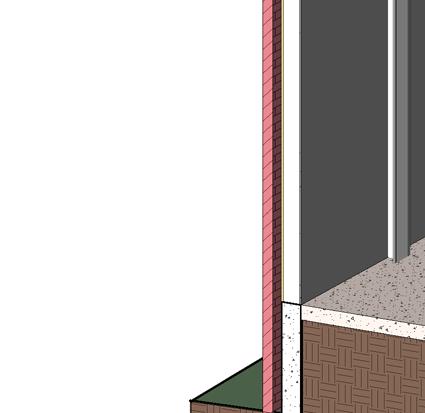 2 Scale: 1-1/2" = 1'-0" EXT WALL AND FOUNDATION 1 ISOLATION JOINT 1/4" PROTECTION BOARD DAMP MOISTURE/ AIR BARRIER DRAIN TILE GRAVEL 1 1/2" RIDGED INSULATION 6" 1'-2 9/16" VAPOR RETARDER 1/2 DRYWALL VAPOR RETARDER 1 1/2" RIDGED INSULATION WALL TIE AIR BARRIER
