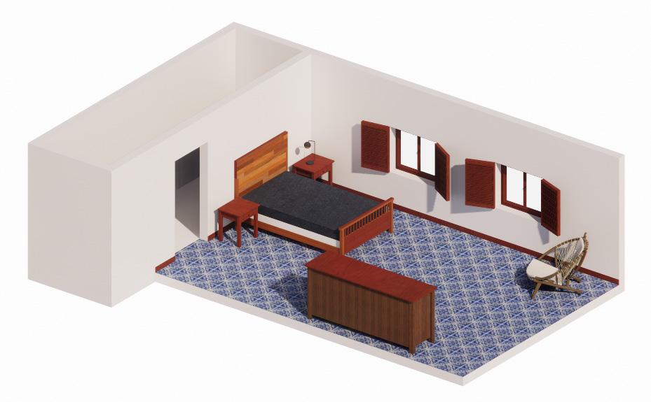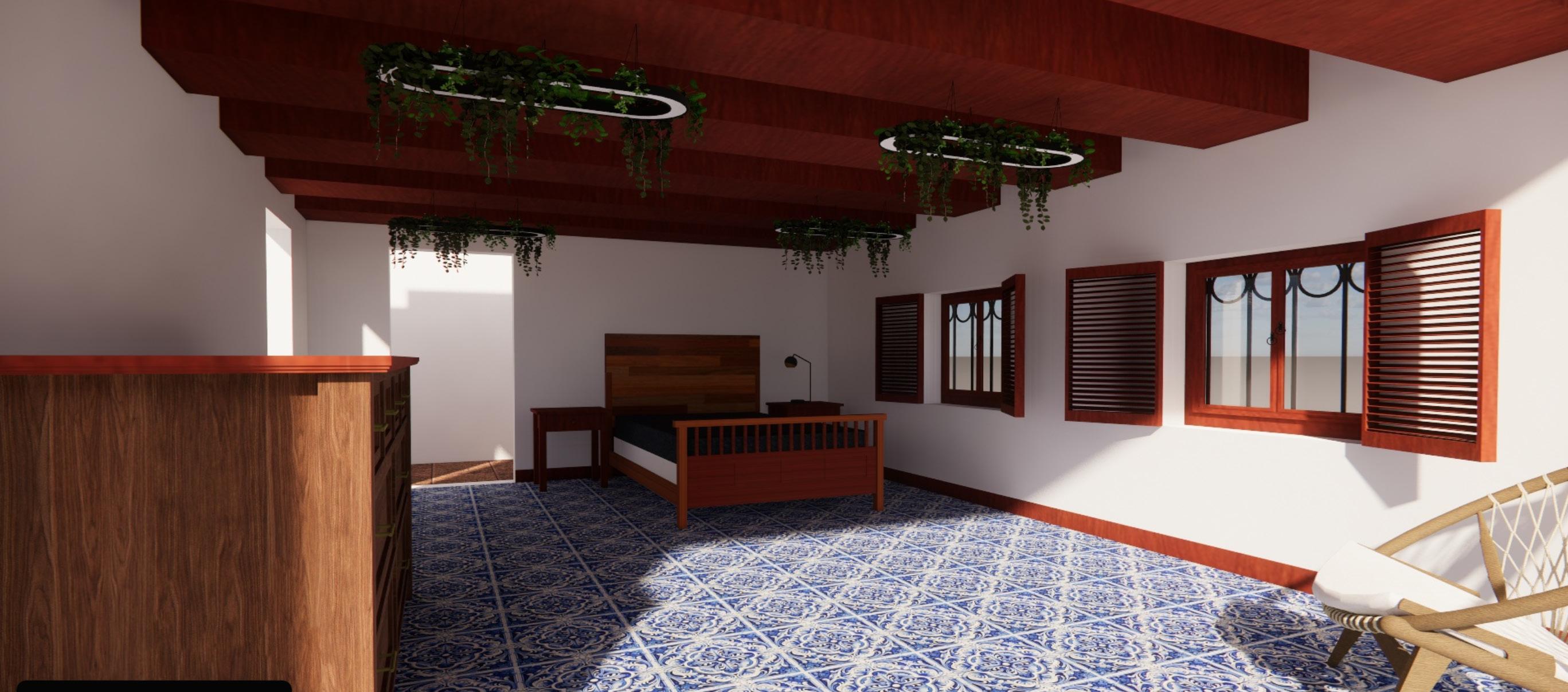 This project blends precise perspective drawing with the allure of Caribbean Spanish colonial design, using Sienna browns, royal blues, and stark whites. It transforms a bedroom into a journey through time and culture, showcasing design’s power to transport, inspire, and nurture dreams.