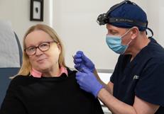 Previous page: time for the stitches to come out. Dr Scott Barker about to remove Sue’s stitches seven days after the procedure.
