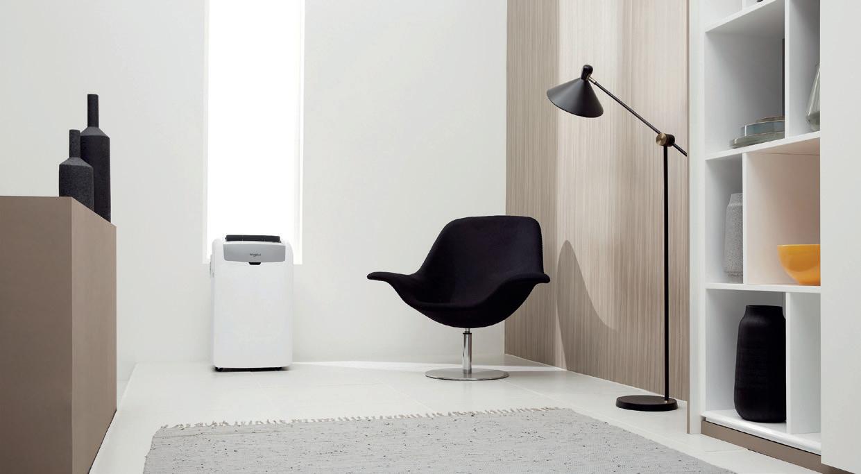 El aire acondicionado portátil de Whirlpool PACW29COL, con etiqueta energética A, es ligero, silencioso y fácil de mover. Gracias a sus ruedas y a su diseño compacto, se puede trasladar fácilmente a cualquier estancia de hasta 30 m² para disfrutar de la mejor