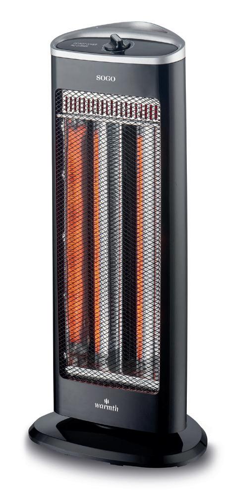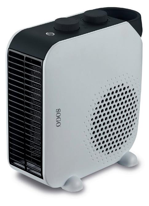 Del catálogo de Sogo en calefacción destaca el calefactor con filamento de carbono SS-18224, equipado con dos filamentos de carbono de alta eficiencia y ahorro de energía con doble potencia de 500/1.000 W. Con diseño elegante y forma triangular para ubicarlo en cualquier rincón de la habitación, ofrece un rápido calentamiento y función oscilación que distribuye el calor de forma más homogénea. En cuanto a seguridad, ofrece apagado automático en caso de caída del aparato. Además, dispone de regulador giratorio para control de potencia de calefacción y posee carcasa de plástico resistente al calor hecha de material ABS.