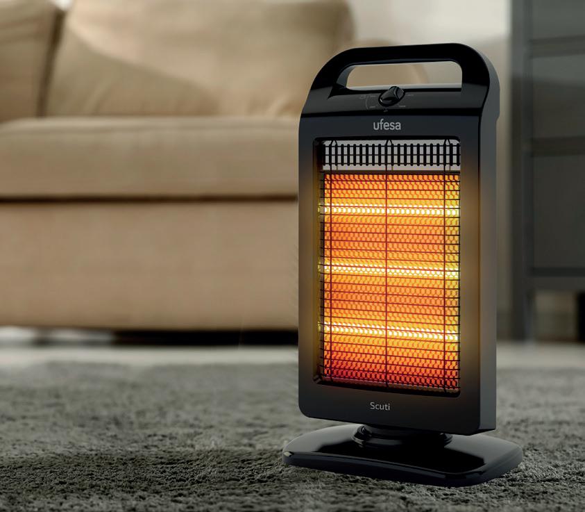 El calefactor halógeno Scuti de Ufesa es el producto idóneo para calentar espacios que no cuenten con otros sistemas de calefacción o que requieran de un uso ocasional. De hecho, este calefactor de 1.200 W de potencia, cuenta con asa de transporte