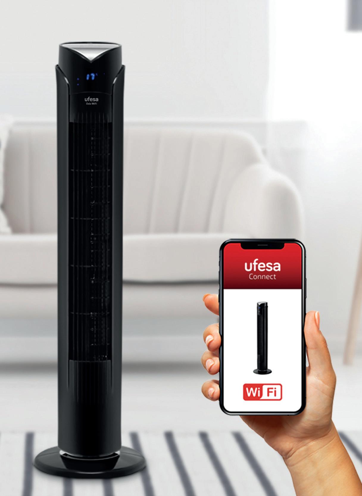 Dentro del catálogo de soluciones de climatización de Ufesa destaca el ventilador de torre Oslo. Incluye conexión wi-fi y con sus 45 W de potencia proporciona un gran flujo de aire.