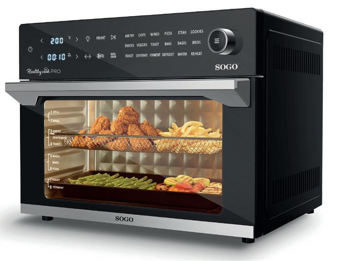 Se trata de un horno freidora de aire+deshidratador+asador que permite freír y cocinar de forma saludable una amplia variedad de platos al mismo tiempo. Con ¡ 1.800 W y 30 l de capacidad, cuenta con control de temperatura 30-230 ºC, 18 menús preestablecidos, configuraciones de cocción dual exclusivas para opciones de cocción multifase y función Deshidratante ultrarrápida para deshidratar en 4-5 h. Además, dispone de panel de control digital con pantalla táctil multifuncional para facilitar la cocción, temporizador de 12 h con apagado automático y 4 niveles de cocción para preparar diferentes alimentos simultáneamente. Viene con recetario y con múltiples accesorios, a la vez que tiene puerta de vidrio doble y mango de tacto frío.