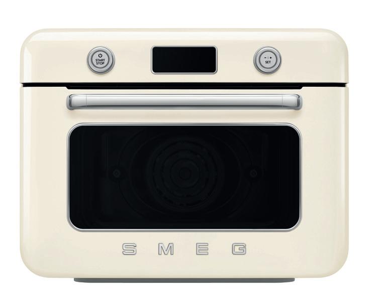 El nuevo horno de sobremesa COF01 permite disfrutar de las capacidades de un horno combinado con vapor (tradicionalmente integrado). Disponible en seis colores (negro, blanco, crema, azul pastel, verde pastel y rojo), tiene una capacidad de 30 l y está equipado con la tecnología Galileo Combi-Steam que proporciona una mejor distribución del calor y ofrece diez funciones: desde Freír con Aire hasta mantener caliente, descongelación y Chef Mode, con 33 recetas automáticas. El depósito de agua garantiza 24 h de vapor continuo, Además, dentro de la tapa del depósito de agua hay un código QR que da acceso al portal Smeg Assistant.