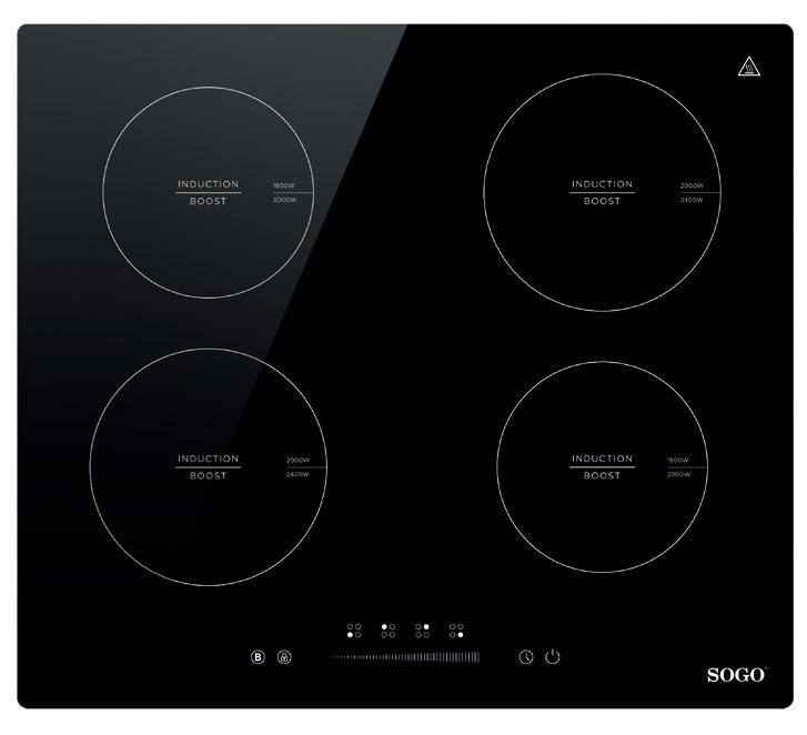 La placa de inducción Induction Hob SS-24015 de Sogo, con 4 zonas de cocción y control táctil, ofrece una potencia total de 7.200 W y una potencia de función Booster de 8.800 W. Equipada con ventiladores integrados para enfriar la temperatura de la placa, dispone de sensores táctiles con panel de control deslizante y de las funciones de apagado automático y de detección automática de utensilios de cocina. Además, cuenta con 9 niveles de potencia, temporizador de hasta 99 minutos e indicador de calor residual. Sistema de seguridad de protección infantil y protección contra sobre temperatura y contra sobrecarga son otras de sus principales prestaciones. El complemento perfecto es el horno con control digital SS-24210, de 80 l de capacidad y con 8 funciones incluyendo modo convección. Con una potencia de 2.400 W (grill 2.400 W), posee puerta de cristal doble de color negro y viene con diferentes accesorios: bandeja de horno con revestimiento antiadherente y rejilla. A destacar la función de limpieza hidrolítica (Steam Cleaning Function) y que es clase energética A.