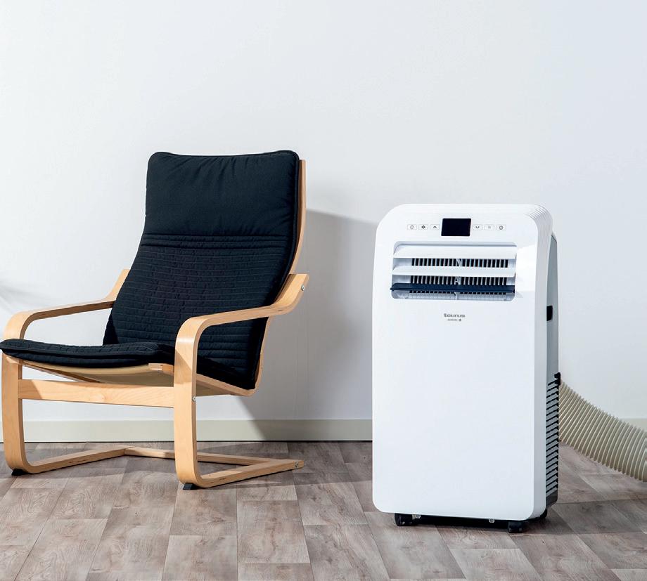 Se trata de un aire acondicionado portátil que ofrece 4 modos de funcionamiento: frío (máximo 1.750 frigorías/7.000 Btu/h/ 2,0 kW), calor (máximo 2.850 frigorías/5.500 Btu/h/ 1,6 kW), deshumidificación (capacidad 17 l/24 h) y ventilación.