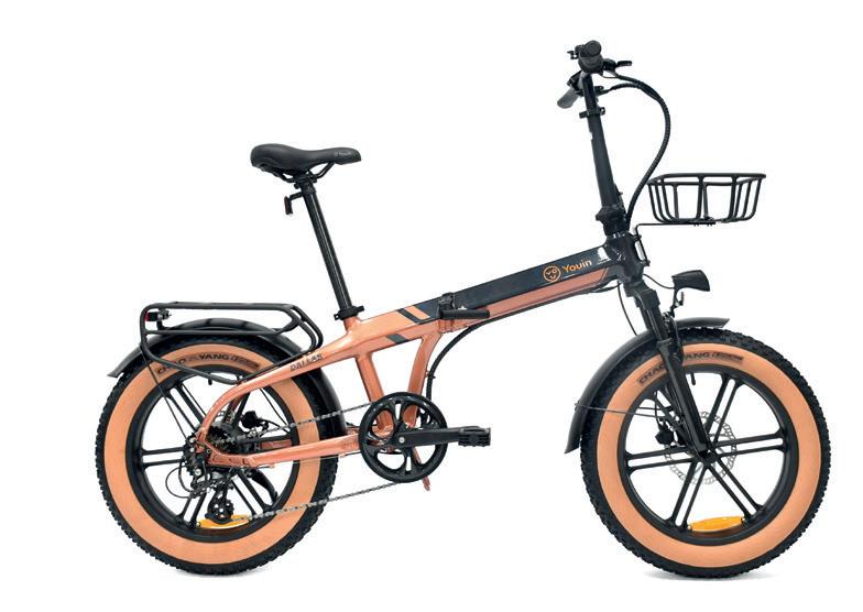 La bicicleta eléctrica FAT plegable Dallas posee ruedas de 20” y 4” de grosor, y motor trasero con elevado sensor de par, que proporciona un pedaleo potente y fluido. Su batería extraíble e integrada en el cuadro, con celdas de primera calidad marca Eve, brinda una media de 60 km de autonomía. El cambio Shimano Altus de 7 velocidades y el cassette 11-34T permiten adaptarse a cualquier inclinación con facilidad. Incorpora frenos de disco hidráulicos, horquilla delantera con suspensión de 80 mm y guardabarros. Su cuadro de aluminio plegable facilita el almacenamiento y transporte. Youin XL3 es un patinete eléctrico con chasis de aleación de magnesio y mástil conificado reforzado que garantizan resistencia y durabilidad. Su motor de 800 W y batería de 12.5 Ah/48 V ofrecen una media de 45 km de autonomía. Dispone de ruedas tubeless antipinchazos de 10” y doble suspensión con basculantes monopivotes reforzados, frenos de disco y luz Led frontal. Su plataforma extragrande brinda una conducción más cómoda y estable, ideal para trayectos largos. A destacar su resistencia al agua y polvo IPX4 y que ofrece una carga máxima de 120 kg.