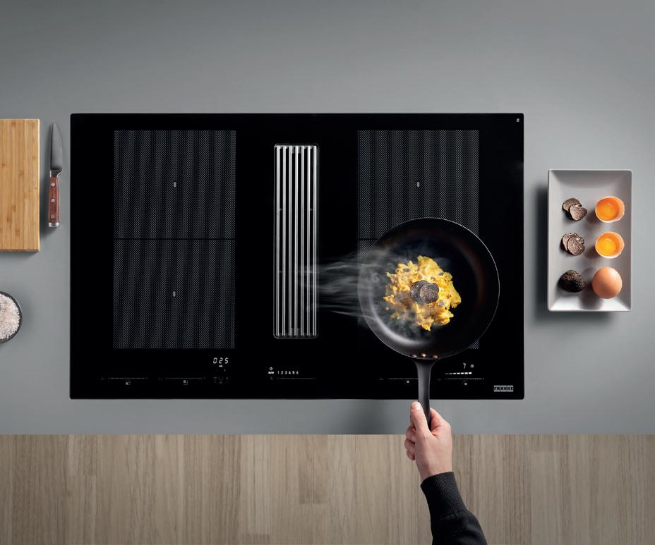 Las placas con campana integrada de Franke combinan diseño, eficiencia y comodidad. Permiten aprovechar mejor el espacio, eliminan la necesidad de una campana tradicional y ayudan a crear un ambiente más despejado y moderno. Además, su tecnología de inducción garantiza una cocción precisa y eficiente, mientras que el sistema de extracción, integrado de forma discreta, elimina humos y olores de manera eficaz. Esta propuesta está siendo especialmente solicitada en proyectos donde la placa se incorpora en la isla de la cocina y se busca una cocina completamente abierta al salón, sin barreras visuales ni elementos que rompan la armonía del espacio. Una solución perfecta para quienes valoran tanto el diseño como la funcionalidad en el corazón del hogar.