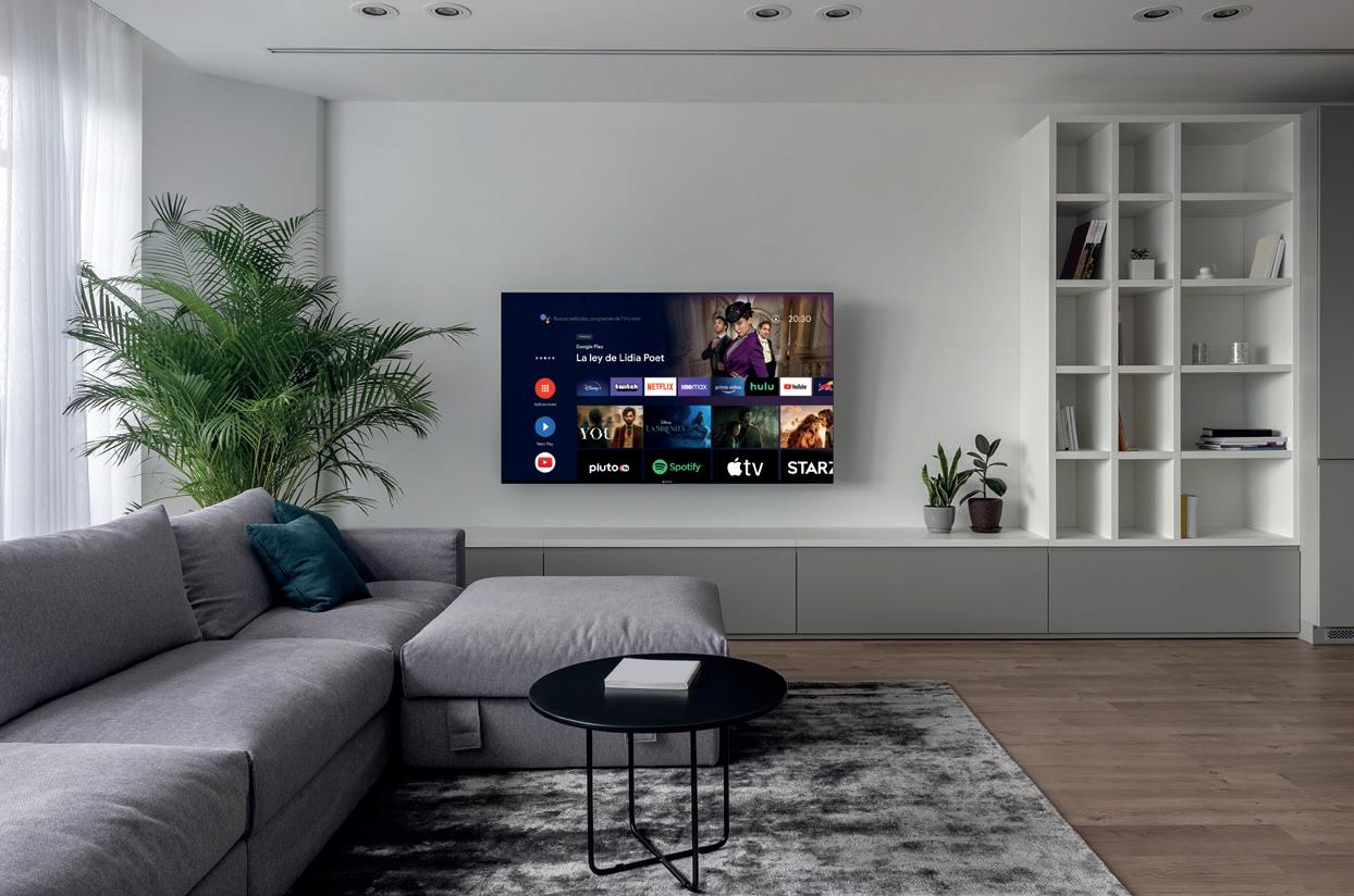 Equipado con Google TV™, asistente de Google integrado y acceso a Google Play, cuenta con Netflix, Prime Video y YouTube preinstalados; a la vez que es compatible con Chromecast™ y Apple AirPlay 2. También ofrece funciones de control del hogar inteligente.