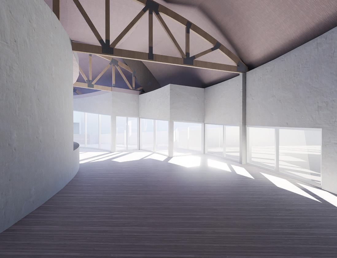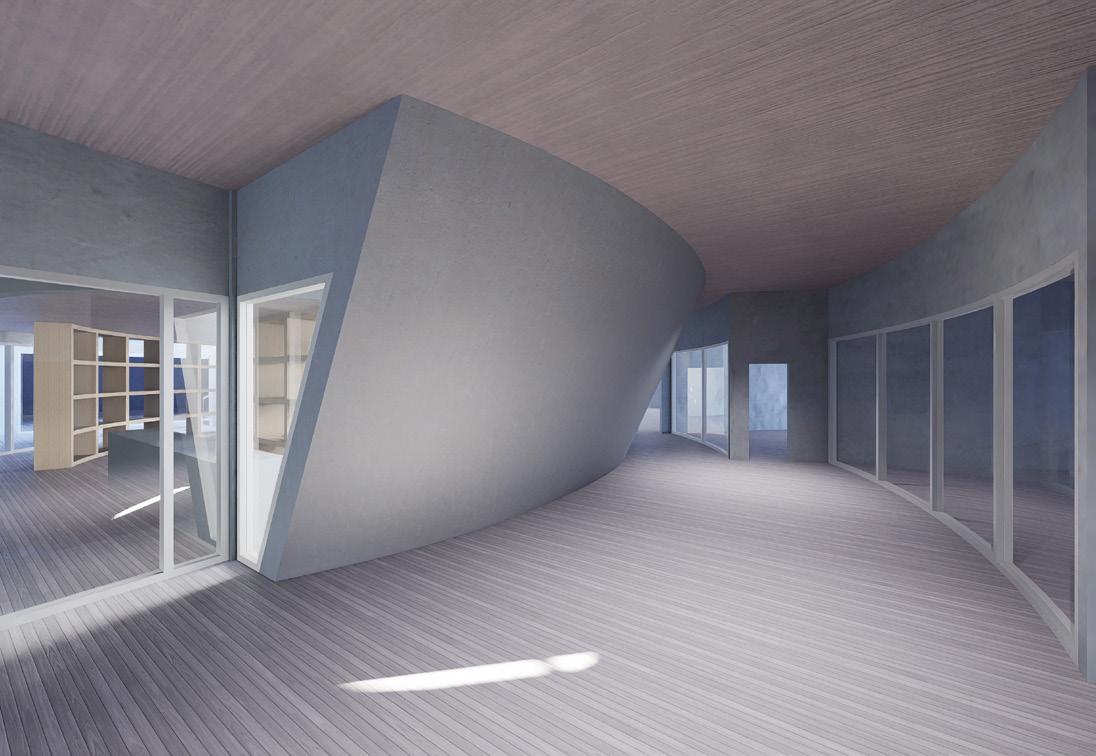 This project unveils an architectural marvel centered around an "endless hallway," guiding visitors on a continuous journey of discovery. At the heart of this journey is a greenhouse—a living symbol of growth and vitality—visible from every vantage point along the corridor. This design ingeniously positions the greenhouse as both a void and a focal point, encapsulated by the building's three-dimensional volumes.