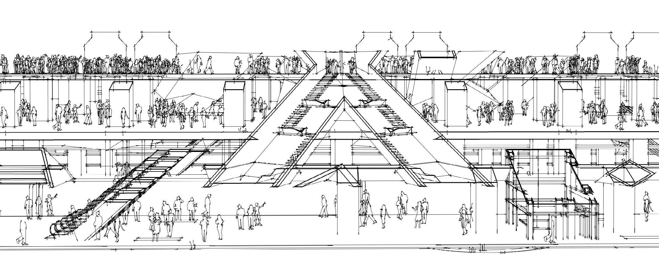 stretch of site along allowing it to reflect adjacencies. To ground our by aligning to the a concealing and from the exterior. which views to the other. The stepped the length of the public thoroughfare, program spillover and