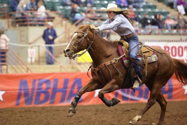 In Barrel Racing, the horse and rider work together to follow a pattern with barrel turns, competing for the fastest time.