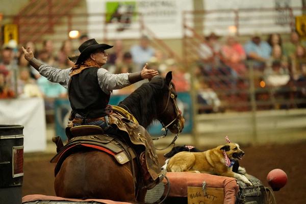 During Bareback Riding, competitors ride without the aid of rein or saddle and, using only a one hand grip, attempt to stay on the horse.