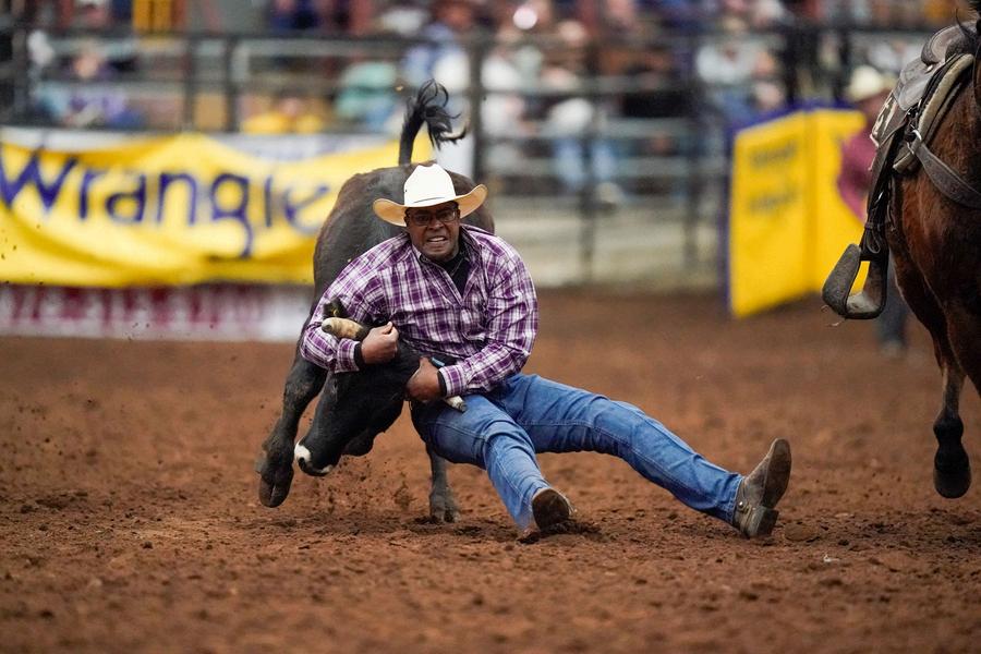 Steer Wrestling, pictured below, involves calculatedly wrangling a steer to the ground from horseback