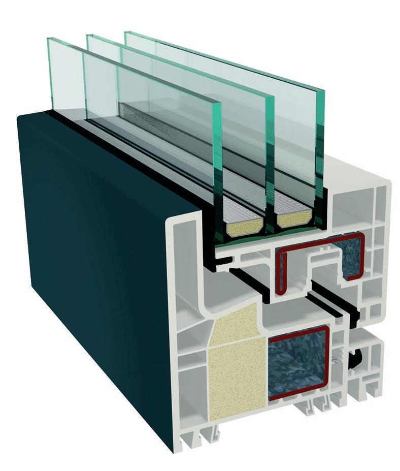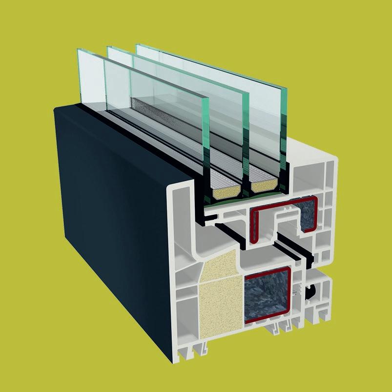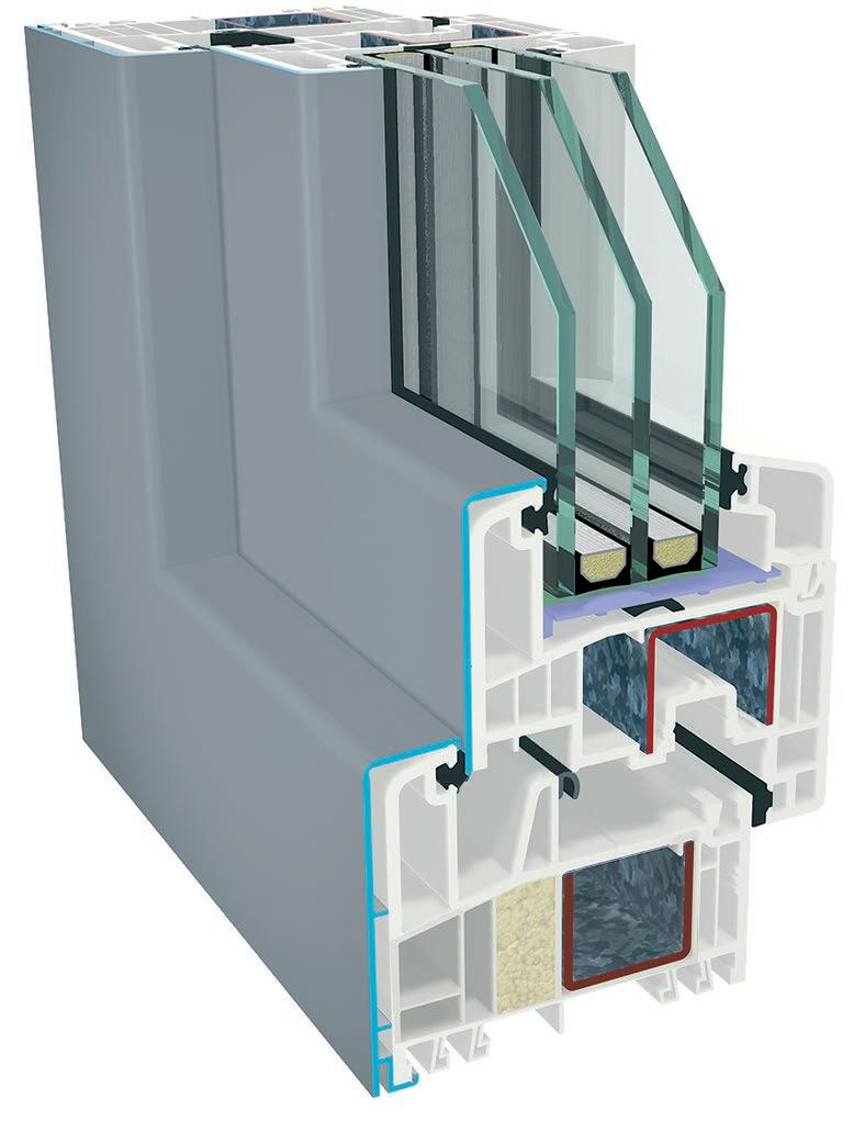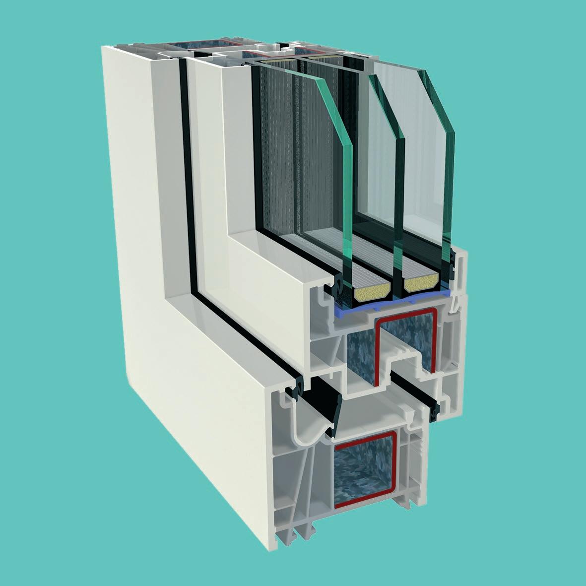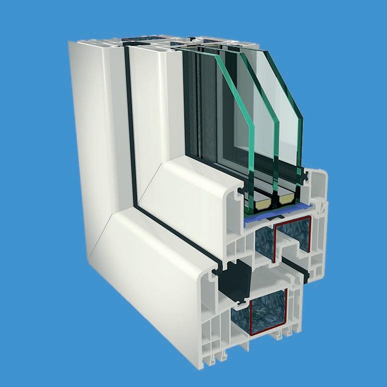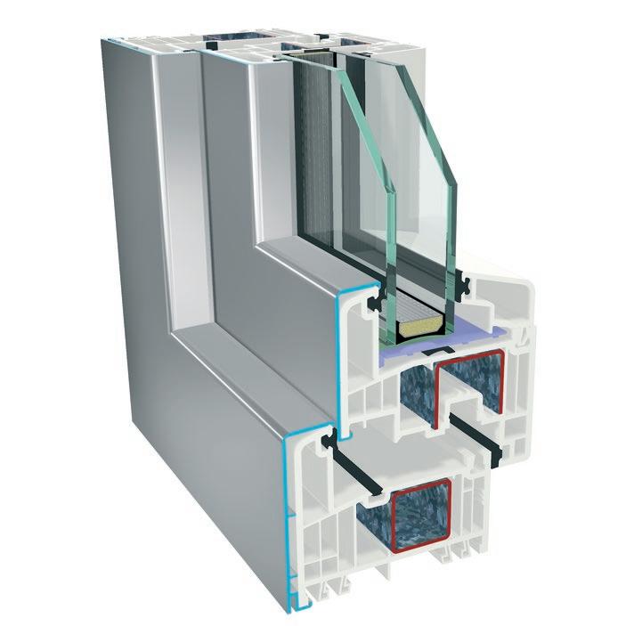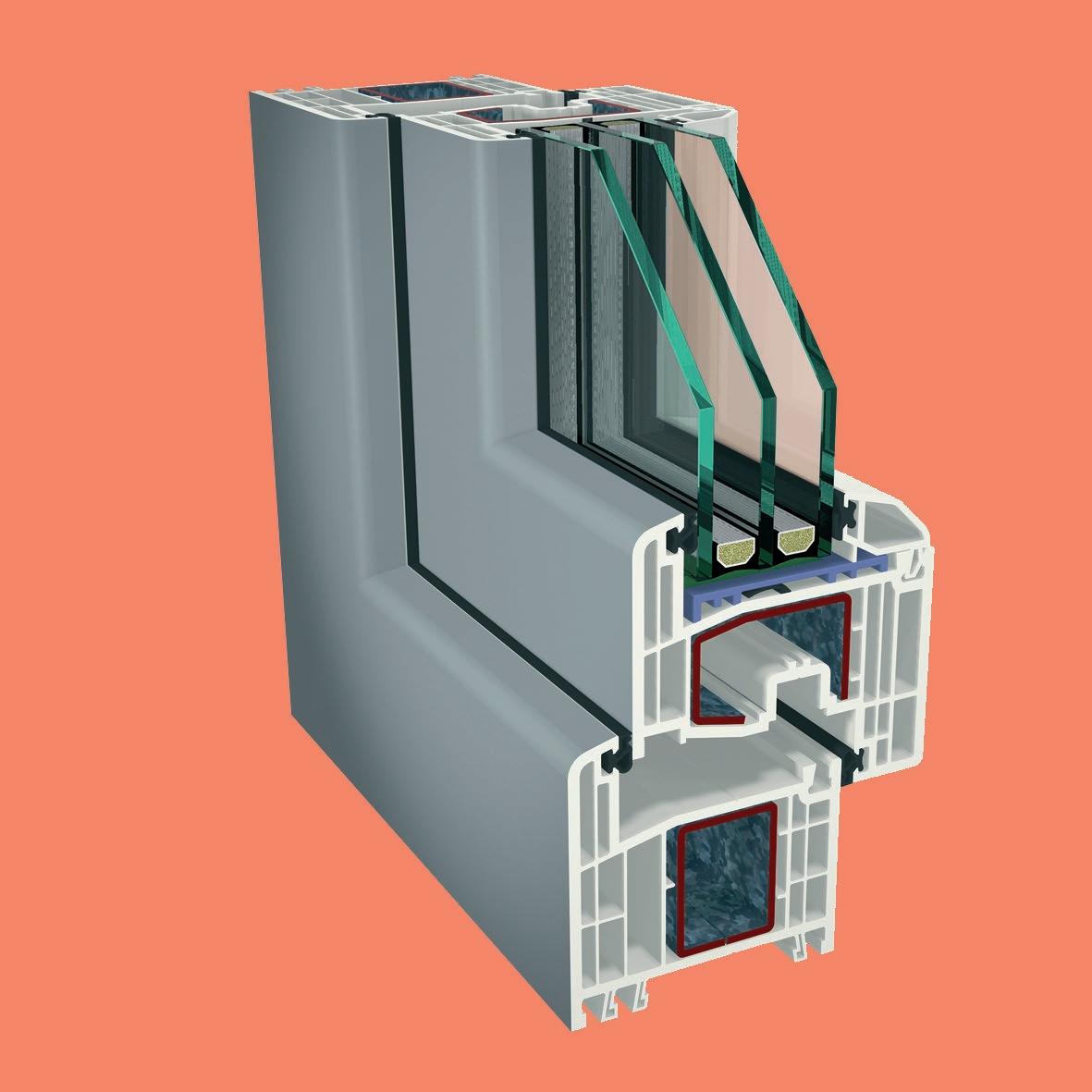 ▪ Uf=0,89 W/m2K (profilo di finestra) ▪ Profilo dell’anta della 6 camera d’aria ▪ Profilo del telaio della 6 camera d’aria ▪ Triplo guarnizione ▪ Bianco/colore/effetto legno/acrilico ▪ Vetro a 3 strati