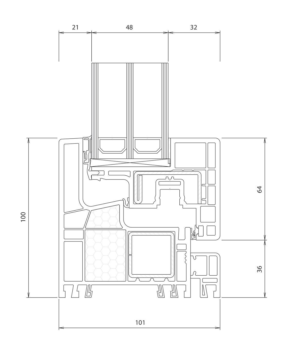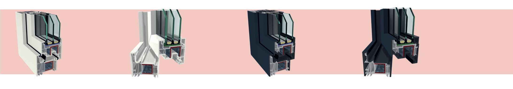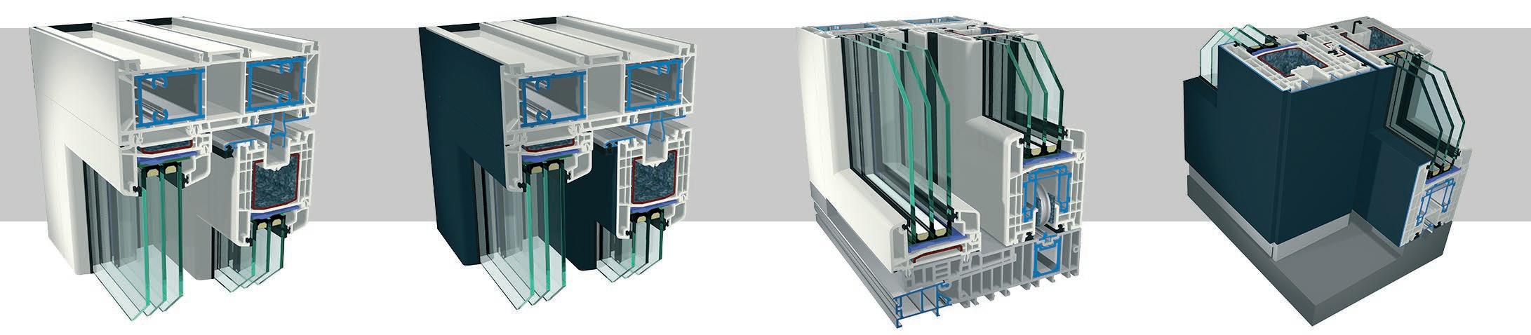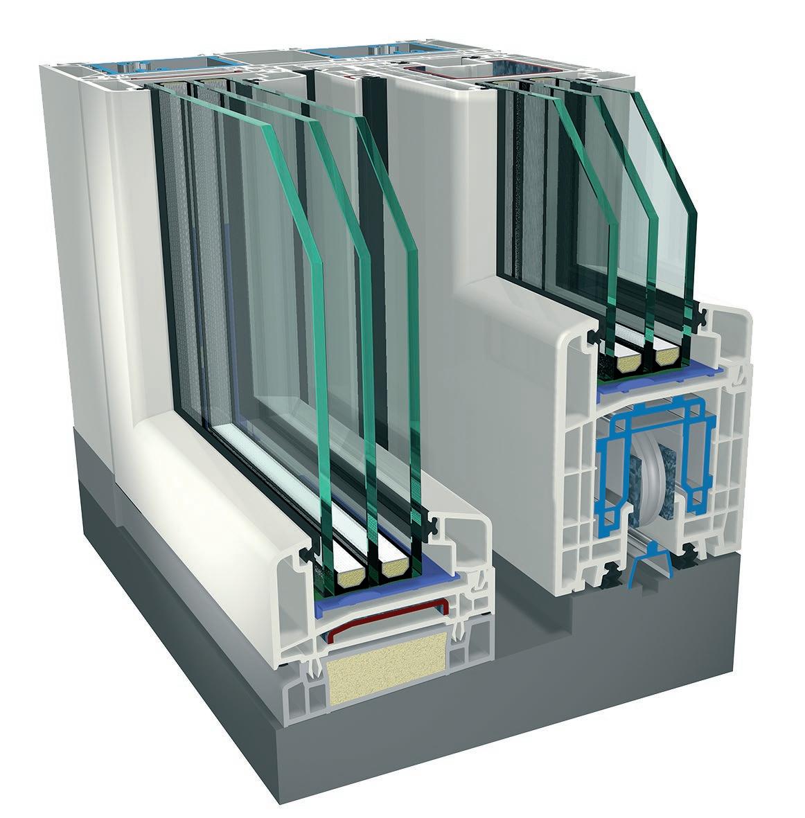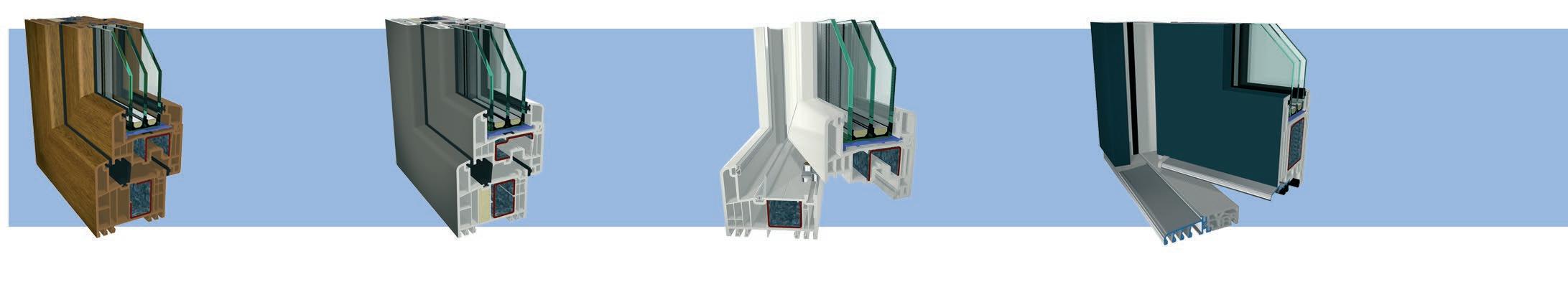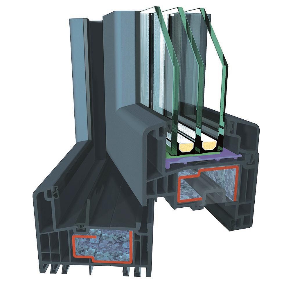 ▪ Uf=0,89 W/m2K (profilo di finestra) ▪ Profilo dell’anta della 6 camera d’aria ▪ Profilo del telaio della 6 camera d’aria ▪ Triplo guarnizione ▪ Bianco/colore/effetto legno/acrilico ▪ Vetro a 3 strati