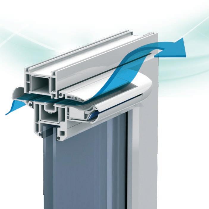▪ Uf=0,92 W/m2K (profilo di finestra) ▪ Profilo dell’anta della 6 camera d’aria Profilo del telaio della 6 camera d’aria ▪ Triplo guarnizione ▪ Bianco/colore/effetto legno/acrilico ▪ Vetro a 3 strati