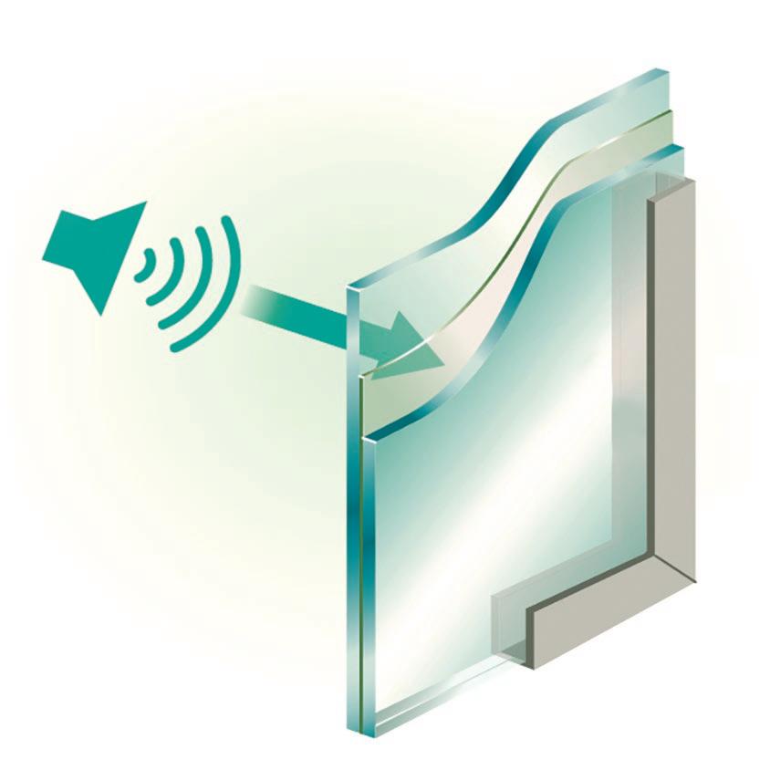 Anche gli ambienti urbani rumorosi possono essere resi vivibili, in particolare attraverso l’uso di vetri speciali. L’isolamento acustico è fornito da due strati di vetro laminato con una speciale pellicola isolante nel mezzo. Questo è appena visibile all’occhio, ma smorza molto bene le vibrazioni del suono. Lo spessore e il materiale della lamina hanno un’influenza significativa sull’efficacia della riduzione del rumore.