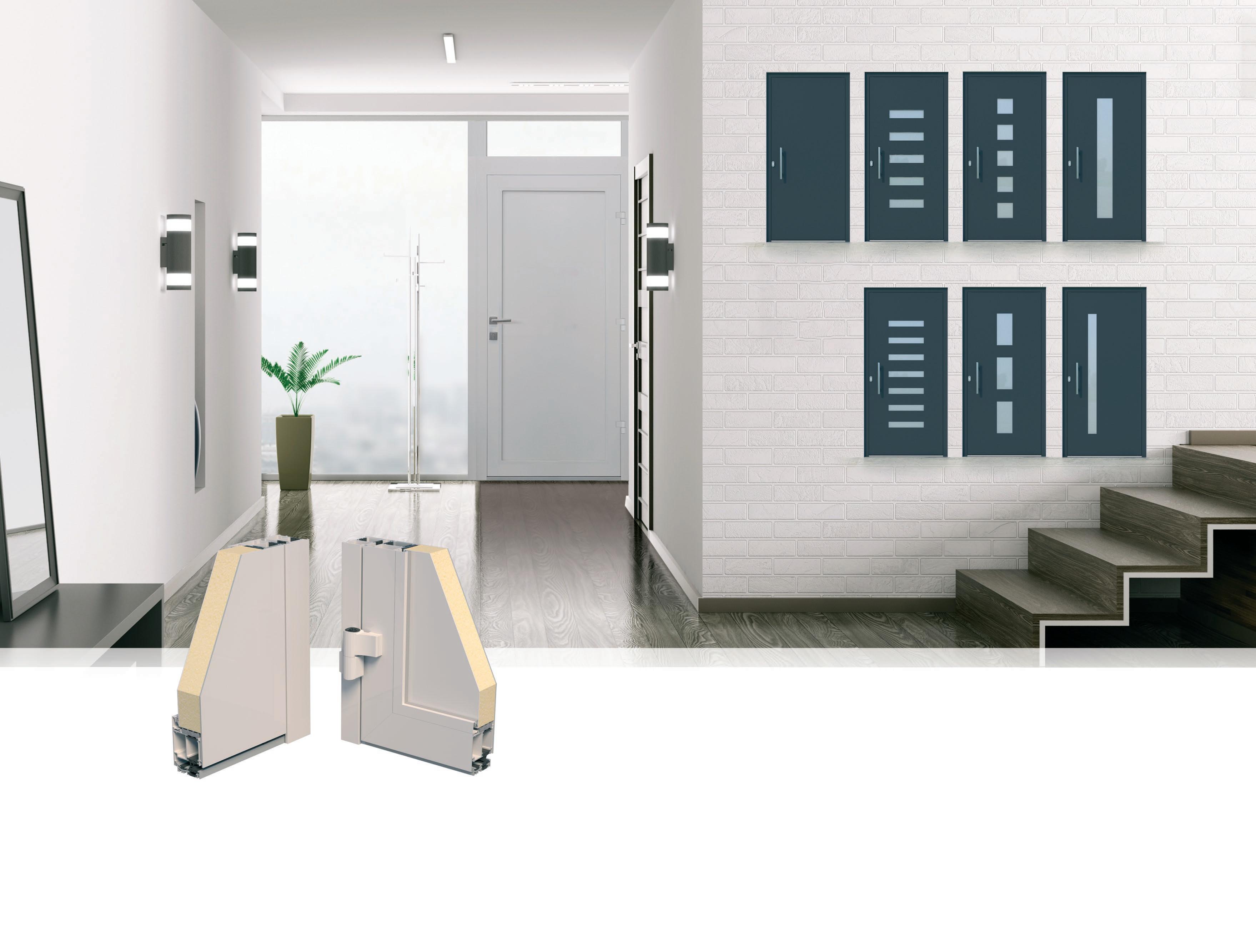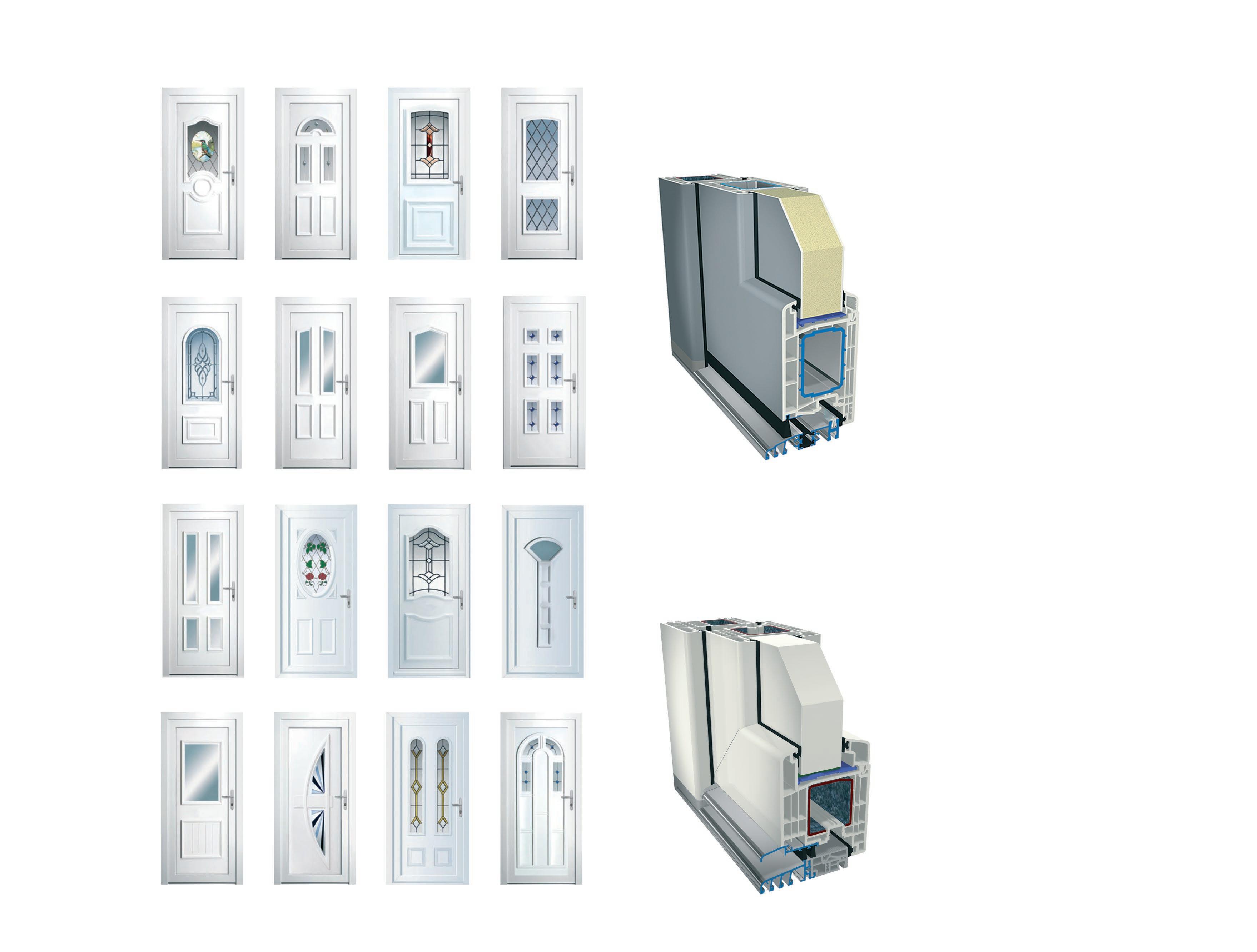 M-9000 AJTÓK - AKÁR REJTETT SZÁRNYAL IS: ▪ 82,5 mm−es német PVC profil ▪ alumínium küszöb ▪ Háromszoros tömítés ▪ Fehér/színes/fadekor/akril kivitel ▪ változatos ajtópanelek