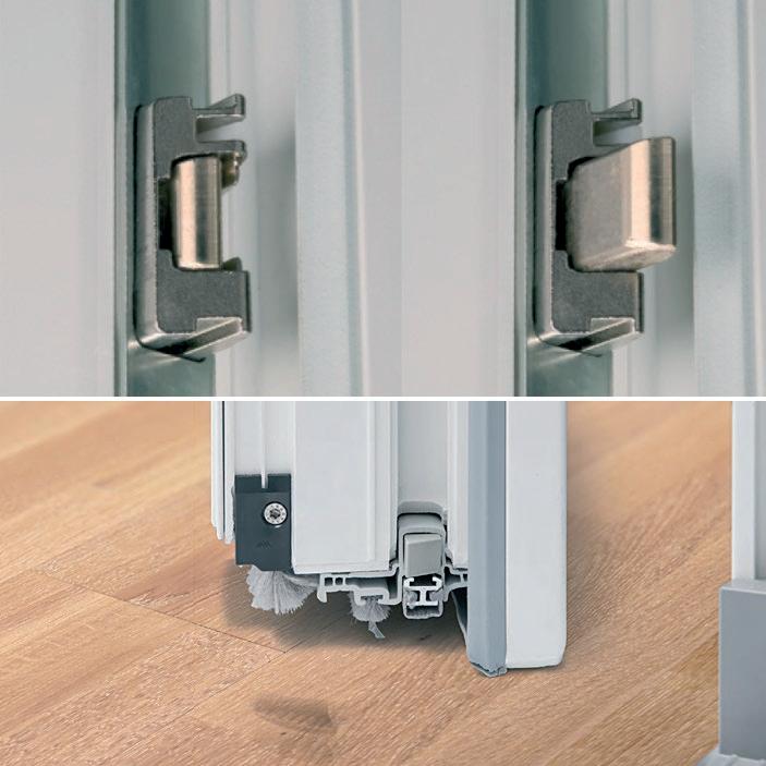 Questa caratteristica di convenienza extra è particolarmente raccomandata per le porte in alluminio con serrature automatiche. Quando viene lasciata aperta, la porta si ritrae automaticamente e gradualmente, il che non è solo conveniente ma anche sicuro. Il discreto estrattore della porta si trova tra il telaio e l’anta, in una posizione poco appariscente.