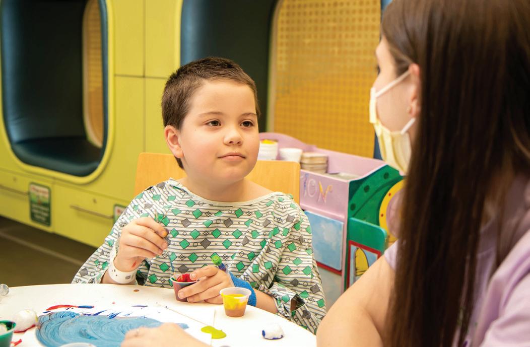For more than 10 years, the Child Life Department at Hoops Family Children’s Hospital (HFCH) has worked alongside clinical staff to create a positive experience for young patients and their families. It’s no secret that being sick can be a challenge for children and family alike. That's why the department’s certified child life specialists and boardcertified music therapist work together to develop services focused on a child's development and well-being.
