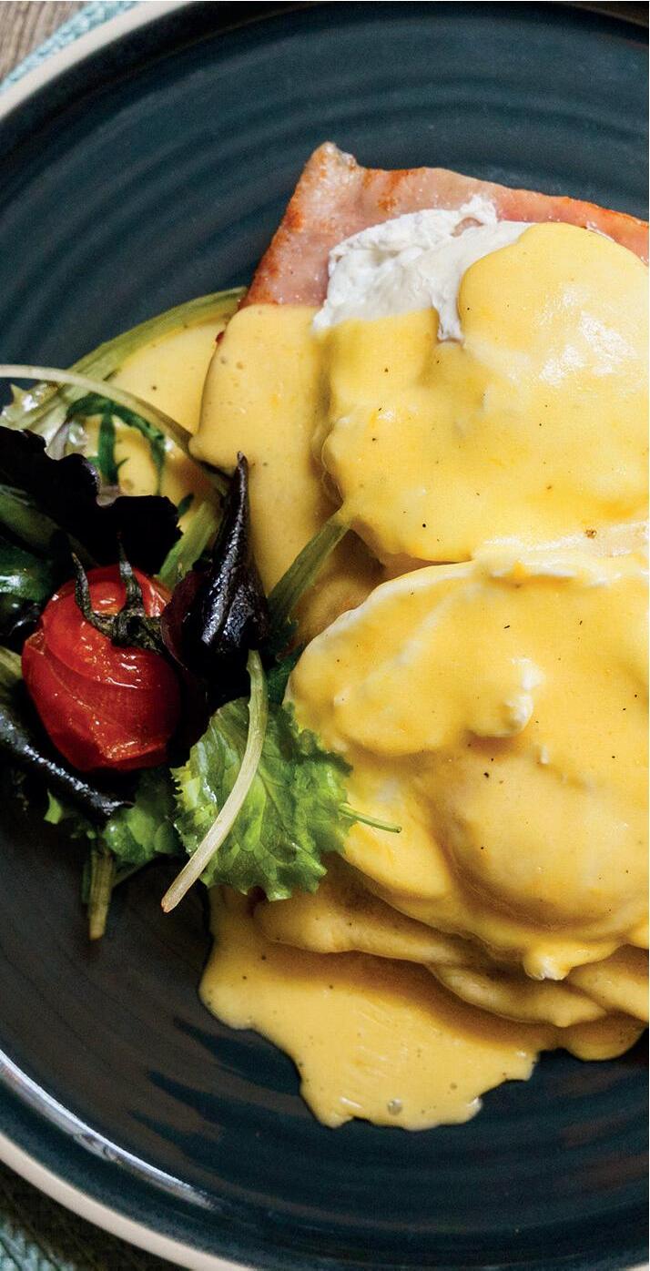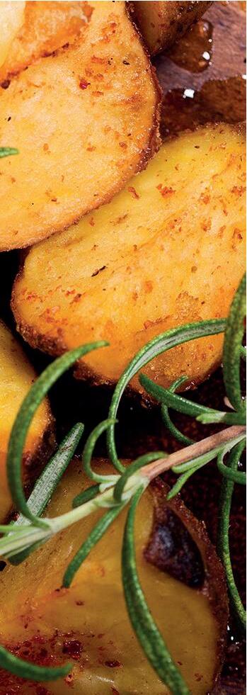 Abowlofpastabecomes CaramelisedOnionOrecchiette withHazelnuts&Crispy Sage,whileaplateofmashis transformedintoGarlickyAligot PotatowithLeeks&Thyme.
