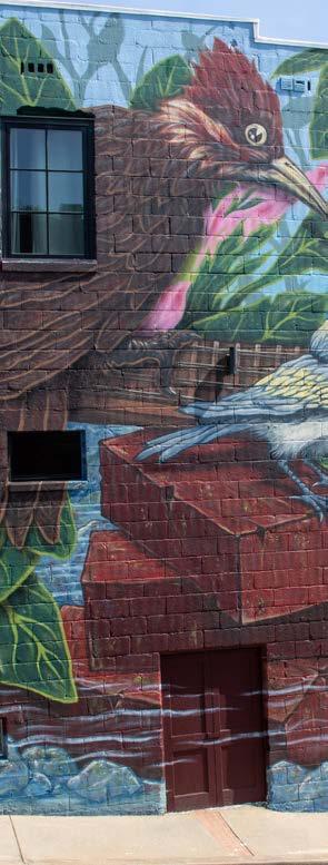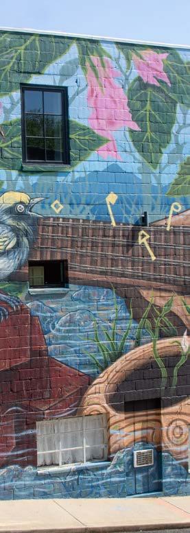 Inside: A new mural on Mt. View Road in downtown Mars Hill was the brainchild of Kelly Spencer, Ph.D., assistant professor of art therapy at MHU, and the work of artist Gabe Eng-Geotz. Elements of the mural represent Appalachian music, the story of Joe Anderson, Cherokee pottery, and the Anderson Rosenwald School, as well as the flora and fauna of the region.