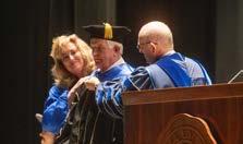 Facing page, top: Charlie Trammell receives an honorary doctorate from Tony Floyd, president, and Anna Renfro, vice chair of the MHU board of trustees. Second row, l-r: a student hugs Professor of Mathematics Laura Steil after graduation; the dedication of the renovated Sunken Garden on May 10; Bottom row, scenes from the nursing pinning ceremony on Thursday, May 9.