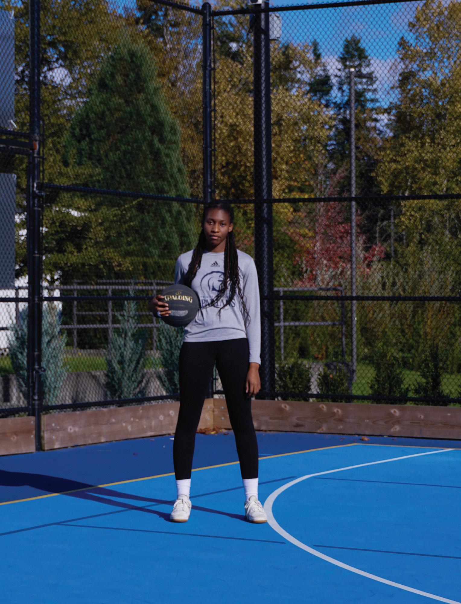 JM: I am in my second year of university. I play for the women’s basketball team as a forward, and I am majoring in sports management.