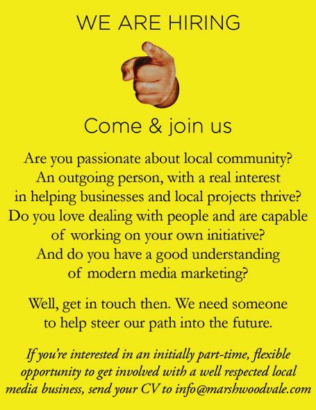 info@marshwoodvale. com The views expressed in The Marshwood Vale Magazine and People Magazines are not necessarily those of the editorial team. Unless otherwise stated, Copyright of the entire magazine contents is strictly reserved on behalf of the Marshwood Vale Magazine and the authors. Disclaimer : Whilst every effort is made to ensure the accuracy of dates, event information and advertisements, events may be cancelled or event dates may be subject to alteration. Neither Marshwood Vale Ltd nor People Magazines Ltd can accept any responsibility for the accuracy of any information or claims made by advertisers included within this publication. NOTICE TO ADVERTISERS Trades descriptions act 1968. It is a criminal offence for anyone in the course of a trade or business to falsely describe goods they are offering. The Sale of Goods Act 1979 and the Supply of Goods and Services Act 1982. The legislation requires that items offered for sale by private vendors must be ‘as described’. Failure to observe this requirement may allow the purchaser to sue for damages. Road Traffic Act. It is a criminal offence for anyone to sell a motor vehicle for use on the highway which is unroadworthy. Editorial Director Fergus Byrne Mark Hix Nic Jeune Russell Jordan Michael McCarthy Nicky Mathewson Advertising Fergus Byrne info@marshwoodvale.com Design People Magazines Ltd Deputy Editor Victoria Byrne Contributors Robin Mills Gay Pirrie Weir Dr Sam Rose Ashley Wheeler WE ARE CROWDFUNDING! Join us on our journey toward sustainability. To learn more, scan the code above or visit: https://www.crowdfunder.co.uk/p/marshwood-valemagazine THIS MONTH in your Marshwood Vale Magazine 10 The Marshwood Vale Magazine March 2024 Email info@marshwoodvale.com Tel. 01308 423031