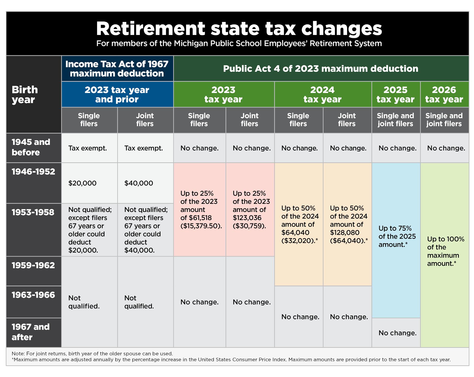 Michigan Office of Retirement Services: FAQs for Public Act 4 of 2023 - Retirement State Tax Changes