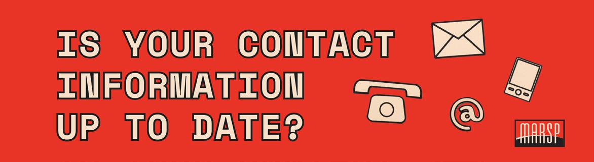 The easiest way to stay connected is to keep your contact information and communication preferences current. You can update them anytime through your online member profile or by contacting the MARSP office: staff@marsp.org, 1-888-960-4022.