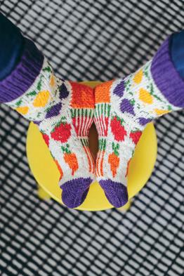 Puutarhurin villasukkiin ikuistetaan satokauden suosikit. martat.fi/puutarhuri-villasukat