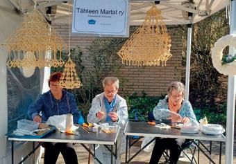 Tähteen Martat olivat mukana Käsityö- ja taitopäivässä Kouvolan museokorttelissa. Elvi Nio, Sirkka Kekki ja Sylvi Kurko tekivät ovikransseja suodatinpusseista sekä ruokohimmeleitä.