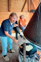 24Haminan Myllykylän Martat viettivät nimppareitaan kylälaavulla Vehkjärven rannalla. Juhlaletut paistoi Hellevi Puonti.